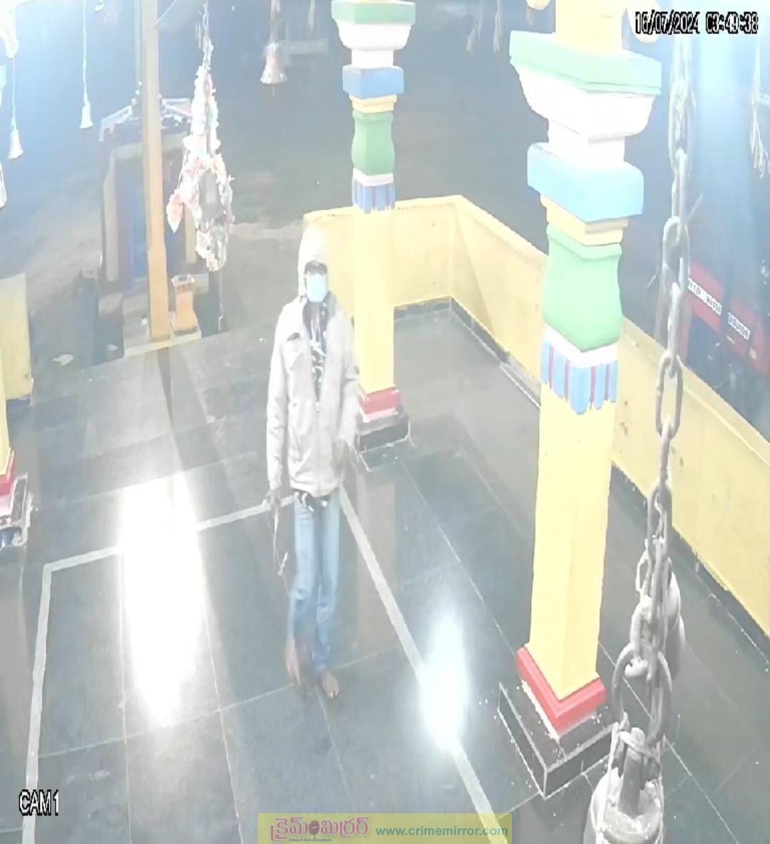 క్రైమ్ మిర్రర్, హత్నూర ప్రతినిధి జూలై 16 : హత్నూర మండల పరిధిలోని వడ్డెపల్లి గ్రామంలో శ్రీ నల్ల పోచమ్మ అమ్మవారి గుడిలోకి ఒక ముసుగు దొంగ ప్రవేశించాడు. మంగళవారం నాడు ఉదయం 3 గంటల 49 నిముషాల కు ఒక దొంగ బ్లూ జీన్స్ ప్యాంటు భూడిద రంగు జెర్కిన్ నల్లటి తెల్ల చారలు ఉన్న షర్ట్ వేసుకొని మూతికి మాస్కు వేసుకొని ఉన్నాడు. చేతిలో ఒక పరికరంతో వచ్చి హుండీ తెరువడానికి ప్రయత్నిచిన ఫలితం లేకపోవడంతొ అమ్మవారికి దండం పెట్టి భక్తి చాటుకొని తిరిగి వెళ్ళిపోవడం విశేషం. ఆ దొంగకు కెమెరాలు ఉన్నట్టు తెలుసేమో కాబోలు ఒక పథకం ప్రకారం ముందుగానే మొఖం కనబడకుండా తగు జాగ్రత్తలు పడ్డట్టు తెలుస్తుంది. గతంలో ఇదే ఆలయంలో రెండు సార్లు దొంగతనం జరిగింది. అప్పుడు హుండీ ఊరవతల లభ్యం అయింది. కాని ఈ సారి ఒక దొంగ హుండీ తెరవడానికి యత్నించి విఫలం అయ్యాడు.