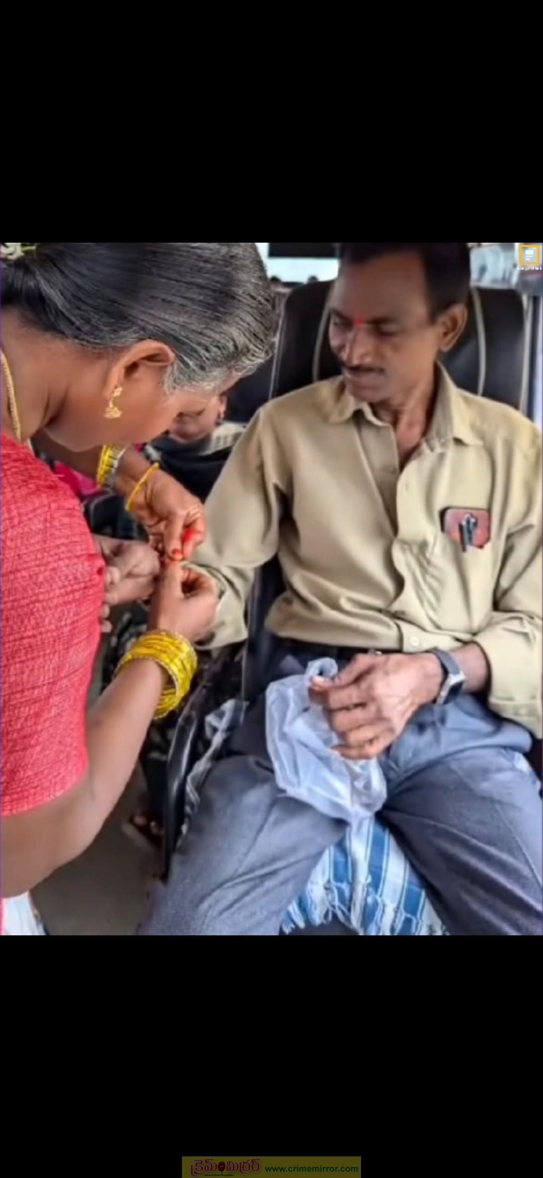 క్రైమ్ మిర్రర్, భూపాలపల్లి : డ్యూటీలో ఉన్న సోదరుడికి రాఖీ పండగ సెలవు దొరకలేదు.. ఏటా రాఖీ కట్టే సోదరి సరస్వతి ఈ ఏడాది ఆ ఆనవాయితీని కొనసాగించాలనుకుంది. దీంతో బస్సు వెళ్లే దారిలో వేచి చూసి అందులో ఎక్కింది. తమ్ముడు కృష్ణమూర్తి నుదుటిన బొట్టు పెట్టి ప్రేమగా రాఖీ కట్టింది. బస్సులో వున్న ప్రయాణికులంతా ఈ దృశ్యాన్ని వీక్షించి వారికి శుభాకాంక్షలు తెలిపారు.