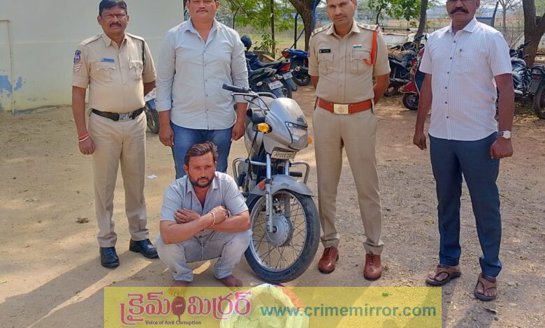 రామకృష్ణాపూర్,క్రైమ్ మిర్రర్:-రామకృష్ణాపూర్ పోలీస్ స్టేషన్ పరిధిలోగుడుంబా తరలిస్తున్న వ్యక్తిని సోమవారం పోలీసులు అదుపులోకి తీసుకున్నారు. అబ్రహం నగర్లో వాహన తనిఖీ సమయంలో భూక్యా రవి (45) అనే వ్యక్తి బైక్పై సుమారు 150 గుడుంబా ప్యాకెట్లను (సుమారు 8 లీటర్లు) రామకృష్ణాపూర్ పట్టణంలో విక్రయించడానికి తరలిస్తున్నట్లు గుర్తించారు. గుడుంబా రవాణాకు ఉపయోగించిన బైక్ స్వాధీనం చేసుకుని కేసు నమోదు చేసినట్లు ఎస్సై శ్రీధర్ తెలిపారు. గుడుంబా తయారీ, విక్రయం, రవాణాపై కఠిన చర్యలు కొనసాగుతాయని, చట్టాన్ని ఉల్లంఘించే వారిపై చర్యలు తీసుకుంటామని తెలిపారు.