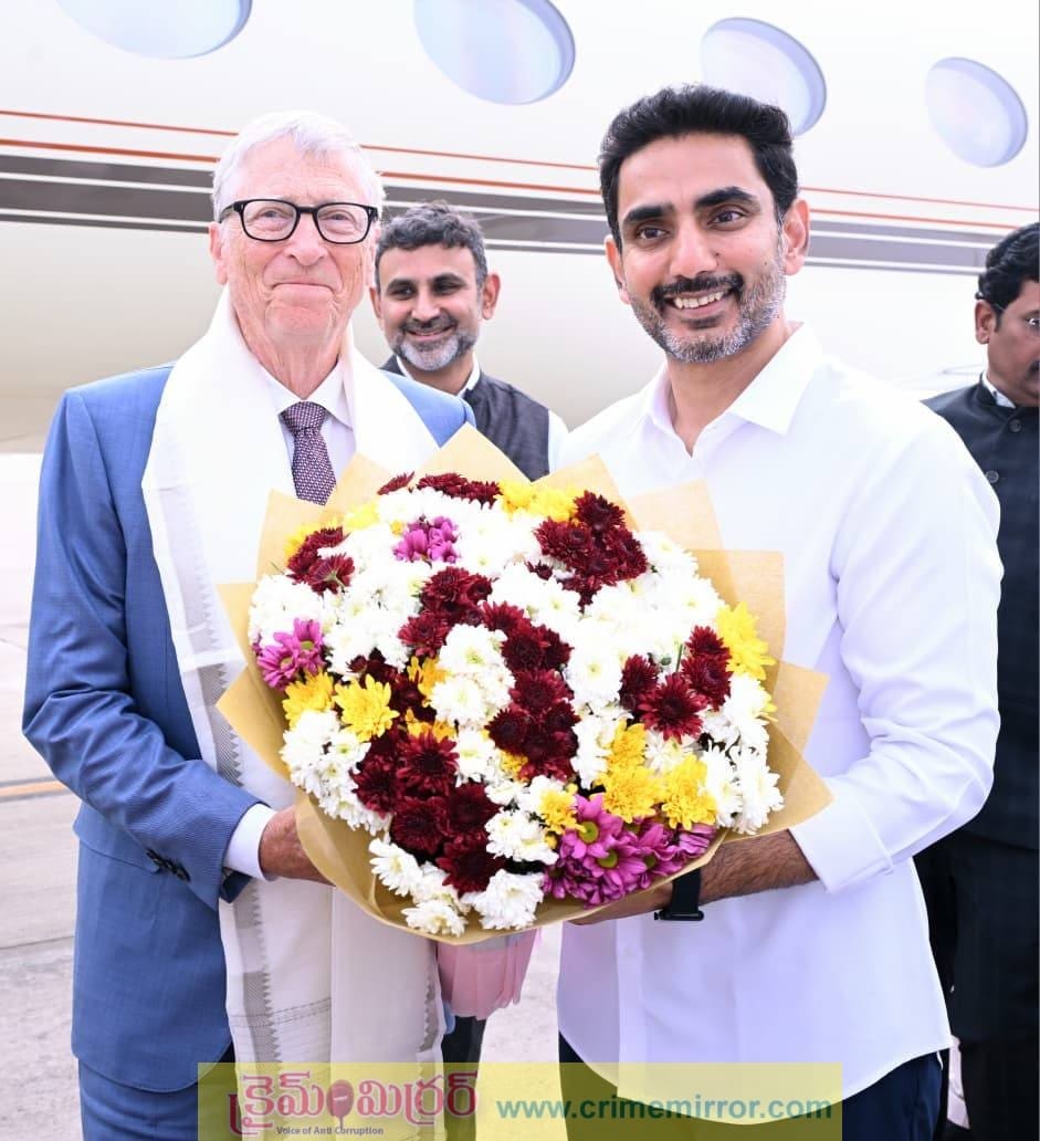 అమరావతి పర్యటనలో భాగంగా గన్నవరం విమానాశ్రయానికి చేరుకున్న గేట్స్ ఫౌండేషన్ ఛైర్మెన్ బిల్ గేట్స్ కు విద్య, ఐటీ శాఖల మంత్రి నారా లోకేష్, హోంమంత్రి అనిత, వ్యవసాయ శాఖ మంత్రి అచ్చెన్నాయుడు, వైద్య శాఖ మంత్రి సత్య కుమార్, అధికారులు ఘన స్వాగతం పలికి సాదరంగా ఆహ్వనించారు.