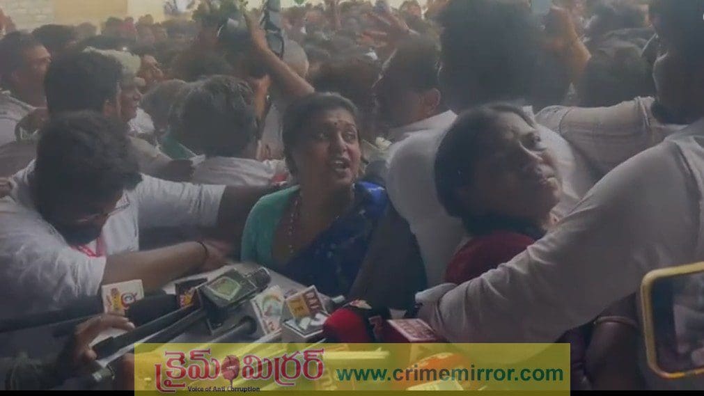 క్రైమ్ మిర్రర్, ఆంధ్ర ప్రదేశ్ :- మాజీ ముఖ్యమంత్రి, వైసీపీ అధినేత జగన్మోహన్ రెడ్డి ఇవాళ బంగారుపాళ్యం పర్యటనకు వచ్చారు. అయితే ఈ పర్యటనలో భాగంగా జగన్ ని చూడడానికి చాలా మంది చుట్టుపక్కల ప్రాంతాల ప్రజలు భారీ ఎత్తున వచ్చారు. వైయస్ జగన్మోహన్ రెడ్డి ని చూడడానికి వచ్చిన కార్యకర్తలు అందరూ కూడా పెద్ద సంఖ్యలో జగన్ని చూస్తూ ఈలలు, కేకలు వేశారు. జగన్ తో ఎలాగైనా షేక్ హ్యాండ్ తీసుకోవడానికి చాలామంది కార్యకర్తలు ఒక్కసారిగా ఎగబడడంతో… ఇక్కడే ఉన్నటువంటి రోజా మరియు పెద్దిరెడ్డి రామచంద్రారెడ్డి ఇద్దరు కూడా తోపులాటలో ఇరుక్కుపోయి అవస్థలు పడ్డారు. కొద్దిసేపటి వరకు భారీగా తోపులాట జరగడంతో రోజా తీవ్ర అసహనానికి గురయ్యారు. వెంటనే అక్కడికి చేరుకున్న సిబ్బంది… రోజా మరియు పెద్దిరెడ్డి రామచంద్రారెడ్డిని తీసుకెళ్లారు. తోపులాట జరిగిన సమయంలో వైసీపీ నేతలు రఘురాం మరియు సునీల్ కుమార్ మాజీ మంత్రి రోజాకు రక్షణగా పక్కనే నిలిచారు. పోలీస్ సిబ్బంది కార్యకర్తలను ఆపడానికి ఎంత ప్రయత్నించినా కూడా లాభం లేకుండా పోయింది. ఇక్కడికి చేరుకున్న భారీ జనం జగన్ ను చూసి “సీఎం..సీఎం” అంటూ పెద్ద ఎత్తున నినాదాలు చేశారు. దీంతో అక్కడ తీవ్ర గందరగోళం పరిస్థితులు ఏర్పడ్డాయి. కాగా ఈమధ్య జగన్ ఎక్కడికి వెళ్ళినా కూడా భారీ ఎత్తున ప్రజలు చుట్టుపక్కల ప్రాంతాల నుంచి గుముగూడి మరియు వస్తున్నారు. జగన్ను కాబోయే సీఎం అంటూ పెద్ద ఎత్తున ఈలలు వేస్తూ నినాదాలు చేస్తున్నారు.
