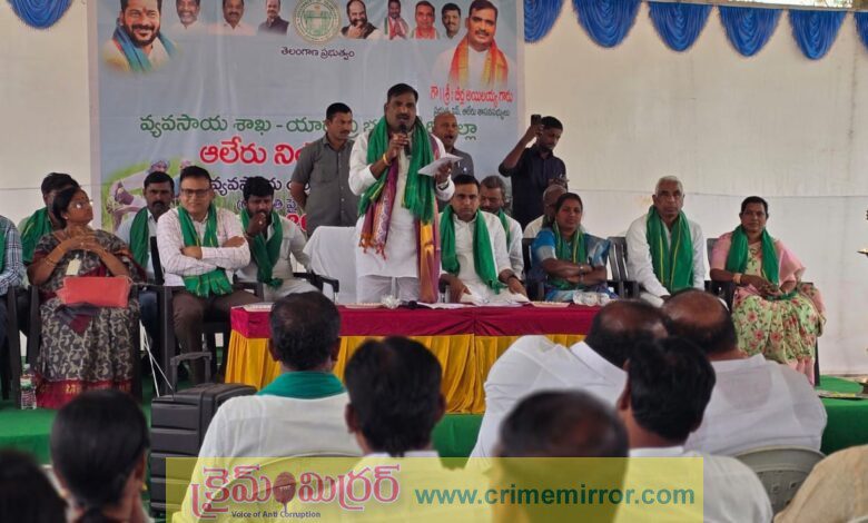 క్రైమ్ మిర్రర్,ఆత్మకూరు :- యాదాద్రి భువనగిరి జిల్లా ఆలేరు పట్టణంలోని మార్కెట్ యార్డులో సోమవారం వ్యవసాయ యాంత్రీకరణ రాయితీ యంత్రాల పంపిణీ కార్యక్రమాన్ని ఘనంగా నిర్వహించారు. ఈ కార్యక్రమంలో తెలంగాణ రాష్ట్ర ప్రభుత్వ విప్, ఆలేరు ఎమ్మెల్యే బీర్ల అయిలయ్య మరియు భువనగిరి పార్లమెంట్ సభ్యులు చామల కిరణ్ కుమార్ రెడ్డి ముఖ్య అతిథులుగా పాల్గొన్నారు. రైతులకు ప్రభుత్వం అందిస్తున్న వ్యవసాయ యాంత్రీకరణ పథకంలో భాగంగా రాయితీపై అందజేస్తున్న యంత్రాలను లబ్ధిదారులకు పంపిణీ చేశారు.ఈ కార్యక్రమంలో పాల్గొన్న నాయకులు రైతులతో ముచ్చటించి,వారి సమస్యలను అడిగి తెలుసుకున్నారు.ఈ సందర్భంగా ఎమ్మెల్యే బీర్ల అయిలయ్య మాట్లాడుతూ, రైతుల ఆదాయం పెంచడమే లక్ష్యంగా రాష్ట్ర ప్రభుత్వం వ్యవసాయ యాంత్రీకరణకు పెద్దపీట వేస్తోందని అన్నారు. ఆధునిక యంత్రాల వినియోగంతో వ్యవసాయ ఖర్చులు తగ్గి, దిగుబడులు పెరుగుతాయని తెలిపారు. రైతుల సంక్షేమమే ప్రభుత్వ ధ్యేయమని స్పష్టం చేశారు.ఈ కార్యక్రమంలో డీఏవో వెంకట రమణారెడ్డి, రైతు విజ్ఞాన కేంద్రం కోఆర్డినేటర్ శాస్త్రవేత్త శ్రీలత,యాదగిరిగుట్ట ఏ డి ఏ శాంతి నిర్మల,ఆలేరు ఏ డి ఏ శ్రీనివాస్ గౌడ్,ఆలేరు మార్కెట్ కమిటీ చైర్పర్సన్ ఐనాల చైతన్య మహేందర్ రెడ్డి, ఆలేరు తహసీల్దార్ ఆంజనేయులు,టిపిసిసి ప్రధాన కార్యదర్శి జనగామ ఉపేందర్ రెడ్డి, ఆలేరు నియోజకవర్గం పరిధిలోని 8 మండలాల వ్యవసాయ అధికారులు, వ్యవసాయ విస్తరణ అధికారులు,వివిధ కంపెనీల ప్రతినిధులు,స్థానిక ప్రజాప్రతినిధులు,రైతులు పెద్ద సంఖ్యలో పాల్గొన్నారు.