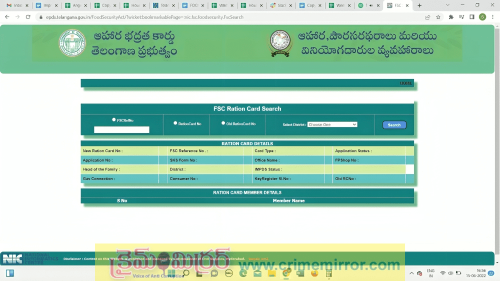 తెలంగాణ ఫుడ్ అండ్ సివిల్ సప్లయ్స్ శాఖ నిర్వహిస్తున్న అధికారిక వెబ్సైట్ epds.telangana.gov.in/FoodSecurityAct ను ముందుగా సందర్శించాలి. వెబ్సైట్ ఓపెన్ అయిన తర్వాత హోమ్ పేజీలో FSC Search అనే ఆప్షన్ కనిపిస్తుంది. ఆ ఆప్షన్పై క్లిక్ చేస్తే, స్క్రీన్పై Ration Card Search అనే కొత్త పేజీ ఓపెన్ అవుతుంది. ఇందులో ఇప్పటికే ఉన్న రేషన్ కార్డుల వివరాలతో పాటు, కొత్తగా దరఖాస్తు చేసిన వారి అప్లికేషన్ స్టేటస్ను కూడా తెలుసుకునే సౌకర్యం ఉంటుంది.