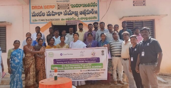 క్రైమ్ మిర్రర్, ఆత్మకూరు:- యాదాద్రి భువనగిరి జిల్లా, ఆత్మకూరు మండలం శనివారం రోజున మండల కేంద్రంలోని మహిళా సమైఖ్య భవనంలో ఎంఎస్ఎంఈ–ర్యాంప్ కార్యక్రమంలో భాగంగా జిల్లా పరిశ్రమల కేంద్రంలోని ఈడిసీ మేనేజర్ కుమ్మరికుంట్ల రంజిత్ కుమార్ ఆధ్వర్యంలో ప్రధానమంత్రి ముద్ర యోజనపై అవగాహన సదస్సు నిర్వహించారు.ఈ కార్యక్రమానికి స్థానిక వ్యాపారులు,చిరు వ్యాపారులు,స్వయం ఉపాధి పొందే యువత మరియు మహిళలు హాజరయ్యారు. ఐఏల్వో ట్రైనర్ హేమాద్రి ముద్ర రుణాలైన శిశు,కిషోర్,తరుణ్ వివరాలు,అర్హతలు,పత్రాలు, రీపేమెంట్ వ్యాపారం ఎలా చేసుకోవాలి దానియొక్క విధి విధానాలపై అవగాహన కల్పించారు.లీడ్ బ్యాంక్ మేనేజర్ శివ రామకృష్ణ మాట్లాడుతూ అర్హులైన వారు సరైన పత్రాలతో బ్యాంకును సంప్రదిస్తే ముద్ర రుణాలు సులభంగా మంజూరు అవుతాయని బ్యాంకుల రుణాల విషయంలో బ్యాంకుల విధి విధానాలు షరతులు వివరించారు.ఎంఎస్ఎంఈ ద్వారా గ్రామీణ ప్రాంతాల్లో వ్యాపార అవకాశాలు పెంచడమే లక్ష్యమని,వ్యాపారం ప్రారంభించాలనుకునే వారు ఈడిసీ ని సంప్రదించాలని లీడ్ బ్యాంక్ ఆఫీసర్ వంశీ తెలిపారు. ఈ కార్యక్రమంలో సర్పంచ్ బీసు ధనలక్ష్మి చందర్ గౌడ్ మాట్లాడుతూ కూడా ఇలాంటి అవగాహన కార్యక్రమాల ద్వారా ప్రజలకు రుణాలు వ్యాపారాలపై అవగాహన వస్తుందని ఇక్కడ ఏర్పాటు చేయడం హర్షణీయం అని తెలిపారు.ఈ కార్యక్రమంలో తెలంగాణ గ్రామీణ వికాస్ బ్యాంక్ మేనేజరు ప్రశాంత్ కుమార్, ఈడీసీ అసిస్టెంట్ మేనేజర్ బత్తినీ మహేష్, మండల మహిళా సమాఖ్య అధ్యక్షురాలు రచ్చ పల్లవి జ్ఞానేశ్వర్ , తదితరులు పాల్గొన్నారు.
