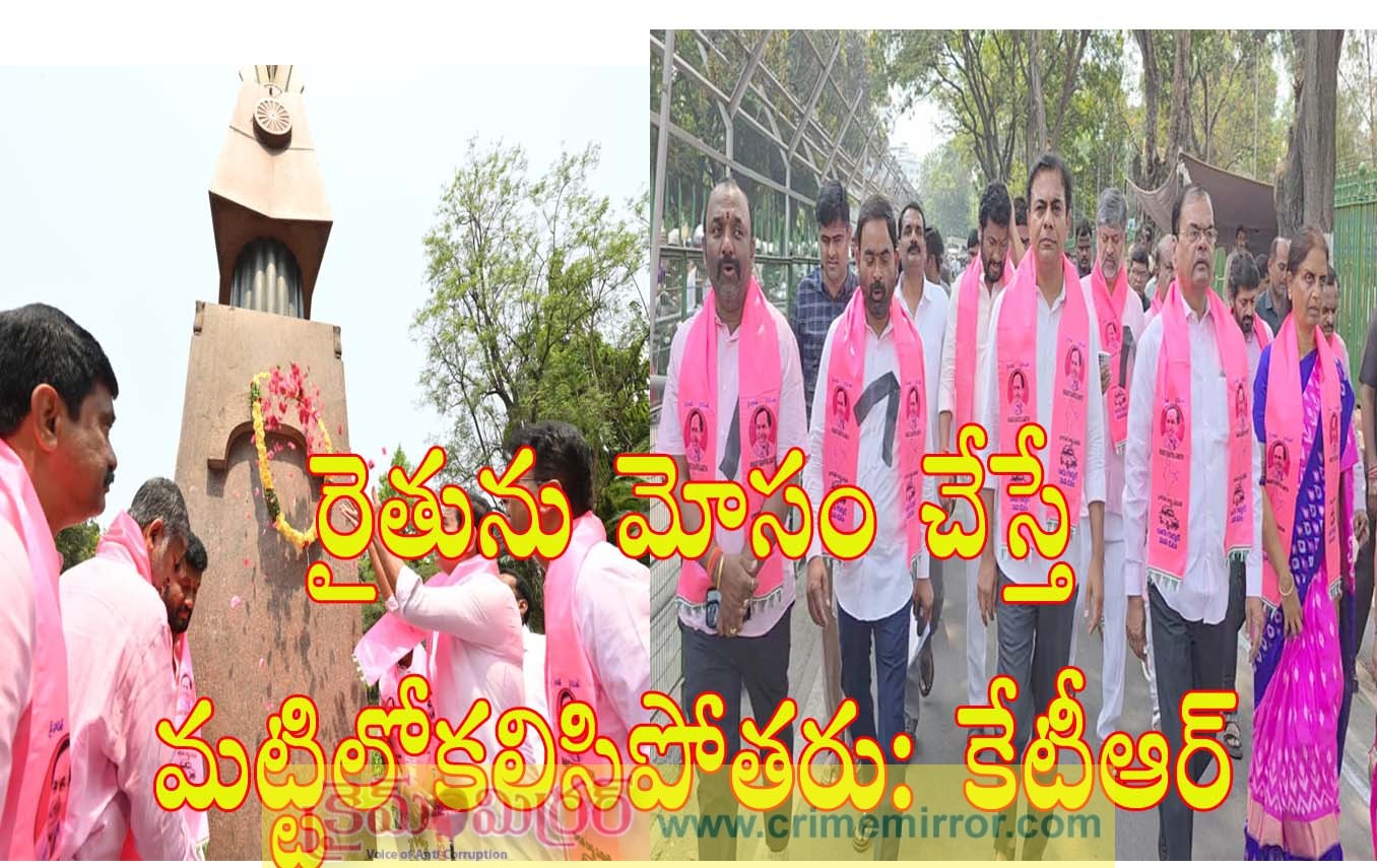 హైదరాబాద్, క్రైమ్ మిర్రర్: కాంగ్రెస్ సర్కార్ విధానాలతో రైతుకు కోలుకోలేని దెబ్బపడిందని రైతులు గమనిస్తున్నా బీఆర్ఎస్ వర్కింగ్ ప్రెసిడెంట్ కేటీఆర్ అన్నారు. రైతు కన్నెర్ర చేస్తే ప్రభుత్వాలు మట్టిలో కొట్టుకపోతాయని కాంగ్రెస్ పార్టీకి గుర్తు చేశారు. అసెంబ్లీ సమావేశాలు ప్రారంభం కానున్న నేపథ్యంలో హైదరాబాద్లోని గన్ పార్కు వద్ద అమర వీరుల స్తూపానికి బీఆర్ ఎస్ ఎమ్మెల్యేలు, ఎమ్మెల్సీలు నివాళులు ఆర్పించారు. ఈ సందర్భంగా ఆయన మాట్లాడారు.గ్యారంటీలకు చట్టబద్ధత కల్పిస్తామని చెప్పి కాంగ్రెస్ సర్కార్ మోసం చేసిందని శాసనసభ సమావేశాలకు ముందు అమరవీరుల స్థూపానికి నివాళులర్పించామని తెలిపారు.
