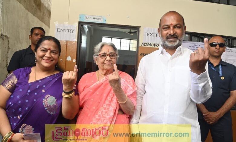 కరీంనగర్,క్రైమ్ మిర్రర్ః మున్సిపల్ ఎన్నికల్లో భాగంగా జ్యోతినగర్ ఎస్ఆర్ హైస్కూల్లో కుటుంబ సభ్యులతో కలిసి కేంద్రమంత్రి బండి సంజయ్ ఓటు హక్కును వినియోగించుకున్నారు.