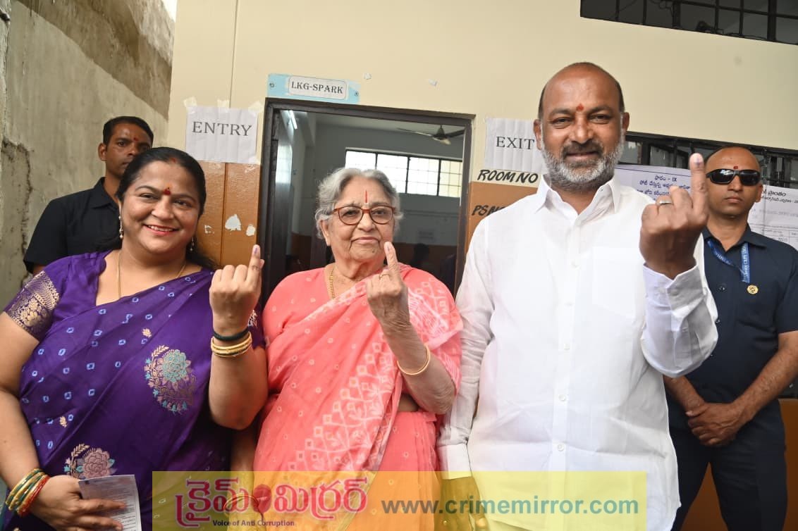 కరీంనగర్,క్రైమ్ మిర్ర‌ర్ః మున్సిపల్ ఎన్నికల్లో భాగంగా జ్యోతినగర్ ఎస్‌ఆర్ హైస్కూల్లో కుటుంబ సభ్యులతో కలిసి కేంద్రమంత్రి బండి సంజయ్ ఓటు హక్కును వినియోగించుకున్నారు.
