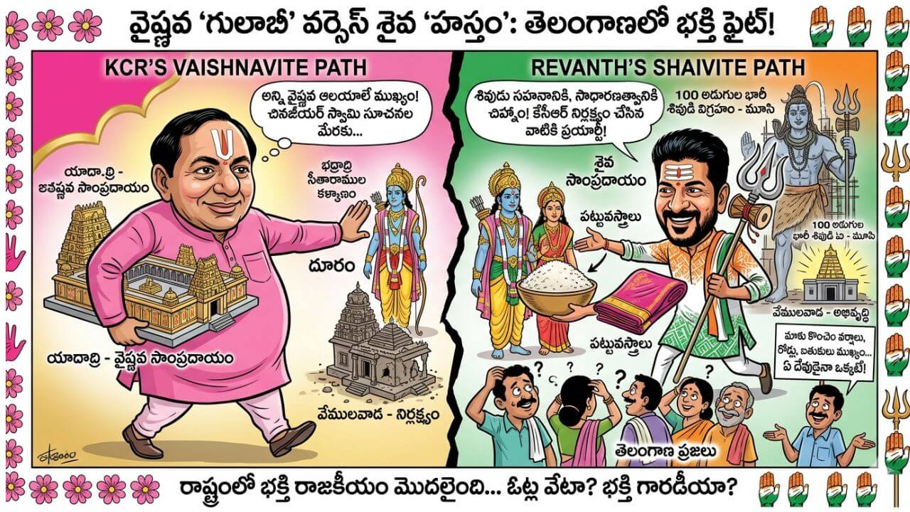 వైష్ణవ సెంటిమెంట్ తో గులాబీ.. శైవ క్షేత్రాల అభివృద్ధితో రేవంత్