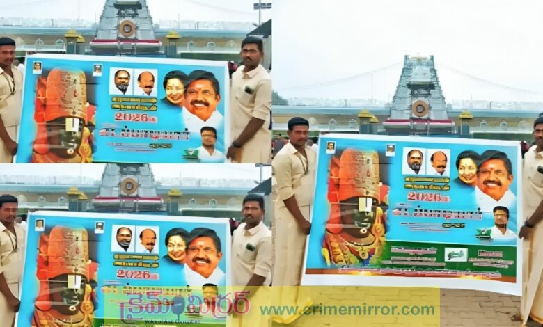 తాజాగా ఇలాంటి ఘటన ఒకటి తిరుమలలో చోటుచేసుకుంది. తమిళనాడుకు చెందిన ఇద్దరు యువకులు శ్రీవారి ఆలయం ఎదుట అత్యుత్సాహం ప్రదర్శించారు. అన్నాడీఎంకే పార్టీకి సంబంధించిన ఫ్లెక్సీ బ్యానర్ను విడుదల చేసి, అందులో తమిళనాడు మాజీ ముఖ్యమంత్రి జయలలిత, మాజీ సీఎం పళనిస్వామి ఫోటోలు ఉంచారు. ఈ ఫ్లెక్సీని ఆలయం ముందు ప్రదర్శించడమే కాకుండా, వీడియోలు, ఫోటోలు తీసి సోషల్ మీడియాలో పోస్ట్ చేయడంతో విషయం వెలుగులోకి వచ్చింది.
