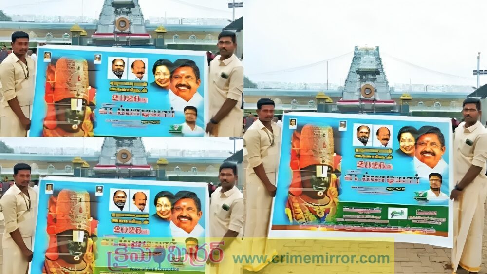 తాజాగా ఇలాంటి ఘటన ఒకటి తిరుమలలో చోటుచేసుకుంది. తమిళనాడుకు చెందిన ఇద్దరు యువకులు శ్రీవారి ఆలయం ఎదుట అత్యుత్సాహం ప్రదర్శించారు. అన్నాడీఎంకే పార్టీకి సంబంధించిన ఫ్లెక్సీ బ్యానర్ను విడుదల చేసి, అందులో తమిళనాడు మాజీ ముఖ్యమంత్రి జయలలిత, మాజీ సీఎం పళనిస్వామి ఫోటోలు ఉంచారు. ఈ ఫ్లెక్సీని ఆలయం ముందు ప్రదర్శించడమే కాకుండా, వీడియోలు, ఫోటోలు తీసి సోషల్ మీడియాలో పోస్ట్ చేయడంతో విషయం వెలుగులోకి వచ్చింది.