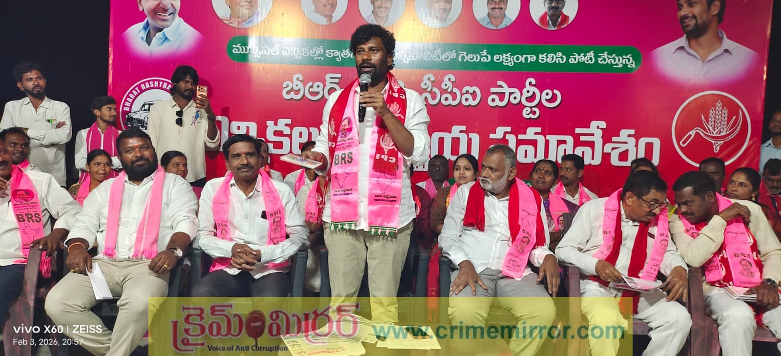 రామకృష్ణాపూర్,క్రై మిర్రర్:- రాబోయే మున్సిపల్ ఎన్నికల్లో నేపథ్యంలో క్యాతనపల్లి గడ్డపై గులాబీ జెండా ఎగరవేయడమే లక్ష్యంగా బీఆర్ఎస్,సీపీఐ తమ వ్యూహాలకు పదును పెట్టాయి. క్యాతనపల్లిలోని చెన్నూరు మాజీ ఎమ్మెల్యే బాల్క సుమన్ నివాసంలో బీఆర్ఎస్, సీపీఐ ఉమ్మడి పొత్తులో భాగంగా కీలక సమన్వయ సమావేశం నిర్వహించారు. ఈ సమావేశంలో ఏఐటీయూసీ రాష్ట్ర అధ్యక్షుడు వాసిరెడ్డి సీతారామయ్య, సీపీఐ రాష్ట్ర కార్యవర్గ సభ్యుడు కలవేన శంకర్తో పాటు 22 వార్డుల అభ్యర్థులు, ముఖ్య కార్యకర్తలు పాల్గొన్నారు. ఈ సందర్భంగా అభ్యర్థులకు ప్రచార వ్యూహాలపై దిశా నిర్దేశం చేశారు.ఈ సందర్భంగా బాల్క సుమన్ మాట్లాడుతూ, పొత్తులో భాగంగా పోటీ చేస్తున్న అభ్యర్థులంతా ఐక్యతతో ముందుకు సాగాలని పిలుపునిచ్చారు.