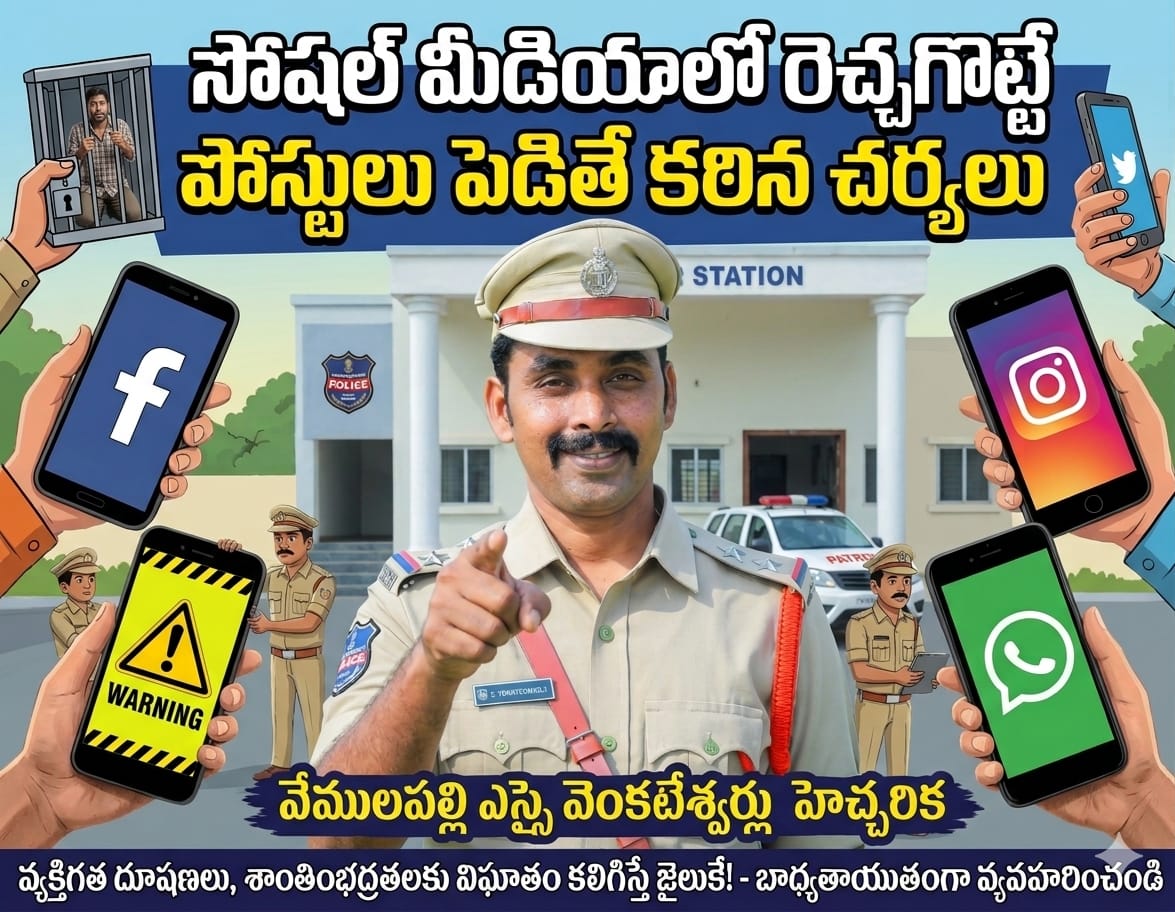 క్రైమ్ మిర్రర్ ప్రతినిధి, వేములపల్లి: సోషల్ మీడియా వేదికగా వ్యక్తిగత దూషణలకు పాల్పడినా, రెచ్చగొట్టేలా పోస్టులు పెట్టినా ఉపేక్షించేది లేదని, వేములపల్లి ఎస్సై డి.వెంకటేశ్వర్లు స్పష్టం చేశారు. మంగళవారం ఆయన విలేకరులతో మాట్లాడుతూ.. ఇటీవల కాలంలో కొందరు సోషల్ మీడియాను దుర్వినియోగం చేస్తూ, శాంతిభద్రతలకు విఘాతం కలిగిస్తున్నారని మండిపడ్డారు. రాజకీయ నాయకులు, జర్నలిస్టులే కాకుండా, ఇతర వ్యక్తులను సైతం లక్ష్యంగా చేసుకుని, అసభ్యకరమైన పోస్టులు పెట్టినా, వారి గౌరవానికి భంగం కలిగించినా చట్టపరమైన చర్యలు తీసుకుంటామన్నారు.