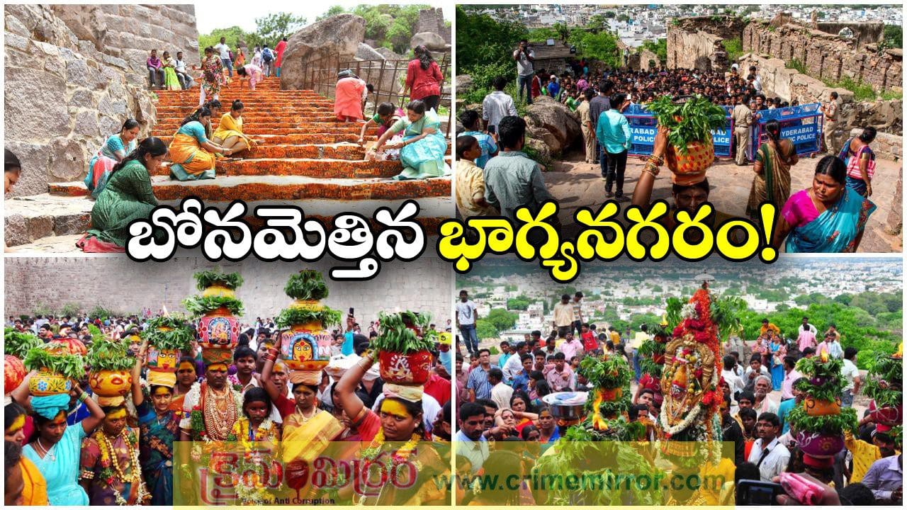 Golconda Bonalu 2025: భాగ్యనగరంలో బోనాల సంబురాలు మొదలయ్యాయి. గోల్కొండ బోనాలతో ఉత్సవాలకు అంకురార్పణ జరిగింది. వేద మంత్రాలు, శివసత్తులు, పోతురాజుల విన్యాసాలతో గోల్కొండ కోటల భక్తులతో కిక్కిరిసింది. మైదరాబాద్ ఆధ్యాత్మిక శోభను సంతరించుకుంది. ఆషాఢం బోనాలు గోల్కొండ కోటలోని జగదాంబిక అమ్మవారికి బోనాలు సమర్పించడంతో మొదలయ్యాయి. నగరం నలుమూలల నుంచి తరలి వచ్చిన భక్తులతో కోట కిటకిటలాడింది. తొలిరోజు అమ్మవారిని ఏకంగా 2 లక్షల మంది దర్శించకున్నారు. రాష్ట్ర ప్రభుత్వం తరఫున స్పీకర్ ప్రసాద్ కుమార్, మంత్రులు పొన్నం ప్రభాకర్, కొండా సురేఖ అమ్మవారికి పట్టువస్త్రాలు అందజేశారు. బోనాల నిర్వహణకుగాను జగదాంబిక ట్రస్టు సభ్యులకు రూ. 11.50 లక్షల చెక్కును అందజేశారు.