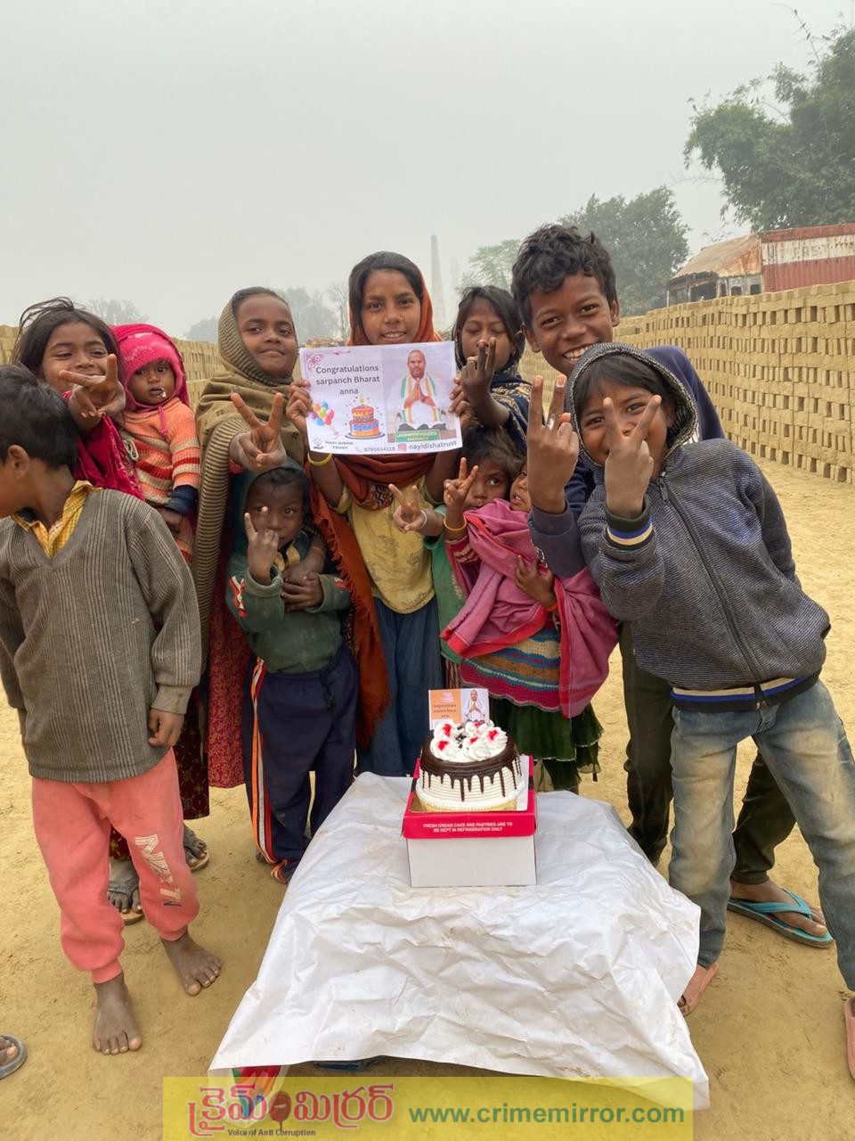 ఈ సందర్భంగా గ్రామంలో హృదయాలను హత్తుకునే సేవా కార్యక్రమం మొదలు పెట్టారు భరత్ అన్న సైన్యం యువకులు. సర్పంచ్గా భరత్ గెలిస్తే 50 మంది పేద పిల్లలకు అన్నదానం చేయిస్తానని భరత్ అన్న సైన్యం యువకులు చేసిన మొక్కును నెరవేర్చుతూ గురువారం ఇటుక బట్టిలో మగ్గుతున్న పేద పిల్లలకు అన్నదాన కార్యక్రమాన్ని ఏర్పాటు చేశారు. ముందుగా ఆ పిల్లలతో కేక్ కట్ చేసి కాంగ్రచులేషన్స్ భారత్ అన్నా అంటూ నినాదాలు చేశారు.