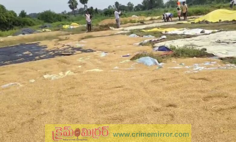 క్రైమ్ మిర్రర్, వలిగొండ:- యాదాద్రి భువనగిరి జిల్లా, వలిగొండ మండల పరిధిలోని గోపరాజు పల్లి గ్రామంలో రాత్రి రెండు గంటల 30 నిమిషాల నుండి భారీ వర్షం కురవడంతో రైతులు మార్కెట్లో పోసిన ధాన్యం పూర్తిగా జలమలయం అయ్యింది. తెల్లవారుజామున రైతన్నలు మార్కెట్లకు వచ్చి చూడడంతో ధాన్యం తడిసి ముద్దవ్వడం చూసి దిగులు చెందారు. ఆరుగాలం చేసి పండించిన పంట అకాల వర్షంతో తడిసి ముద్ద అవ్వడంతో రైతన్నలు లబోదిబోమంటూ కన్నీరు పెట్టడం జరిగింది. విలేకరులు మార్కెట్ కు వెళ్లగా వారి గోసను కన్నీరు పెడుతూ ఏడ్చారు. వెంటనే సమాచారాన్ని ఉన్నత అధికారుల దృష్టికి తీసుకెళ్లారు. ప్రభుత్వం అధికారులు వెంటనే సందర్శించి రైతన్నలను ఆదుకోవాలని వారు విజ్ఞప్తి చేస్తున్నారు.
