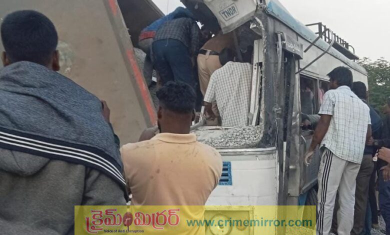 క్రైమ్ మిర్రర్, చేవెళ్ల:- రంగారెడ్డి జిల్లా,చేవెళ్ల మండలం, మీర్జాగూడ వద్ద తీవ్రమైన రోడ్డు ప్రమాదం చోటుచేసుకుంది. తాండూరు డిపోకు చెందిన ఆర్టీసీ బస్సు, కంకర లోడుతో వెళ్తున్న టిప్పర్ లారీని ఢీకొంది. ఈ ప్రమాదంలో బస్సు డ్రైవర్ అక్కడికక్కడే మృతి చెందగా, బస్సులో ప్రయాణిస్తున్న పలువురు తీవ్ర గాయాలపాలయ్యారు. సమాచారం ప్రకారం ప్రమాద సమయంలో బస్సులో 70 మందికి పైగా ప్రయాణికులు ఉన్నట్లు తెలుస్తోంది. ఢీకొన్న ప్రభావంతో టిప్పర్లో ఉన్న కంకర బస్సులోకి దూసుకెళ్లి ప్రయాణికులపై పడింది. కంకర కింద కొంతమంది ఇరుక్కుపోయిన పరిస్థితి ఏర్పడటంతో తీవ్ర ఉద్రిక్త వాతావరణం నెలకొంది.