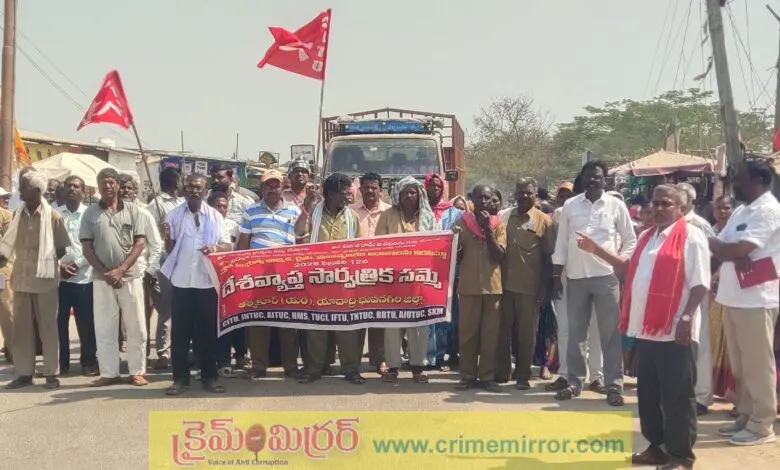 ఆత్మకూరు,క్రైమ్ మిర్రర్:- యాదాద్రి భువనగిరి జిల్లా ఆత్మకూరు మండలం కేంద్రం ప్రభుత్వం అవలంబిస్తున్న కార్మిక వ్యతిరేక విధానాలను నిరసిస్తూ గురువారం రోజున దేశ వ్యాప్త సమ్మెను జయప్రదం చేయాలని కోరుతూ మండల కేంద్రంలో కార్మిక సంఘాలతో ర్యాలీ నిర్వహించారు. ఈ సందర్భంగా సిఐటియు రాష్ట్ర అధ్యక్షుడు గణపతి రెడ్డి మాట్లాడుతూ దేశంలోని నరేంద్ర మోడీ నాయకత్వంలోని బీజేపీ ప్రభుత్వం దేశ కార్మిక వర్గాన్ని కార్పొరేట్ శక్తులకు బానిసలుగా మార్చే విధంగా 29 కార్మిక చట్టాలను రద్దు చేసి వాటి స్థానంలో 4 లేబర్ కోడ్లను బిజెపి నాయకత్వంలోని మనువాద ప్రభుత్వం తీసుకువచ్చిందని దీనివల్ల కార్మికులు తమ వేతనాల కోసం హక్కుల కోసం సమ్మె చేసే హక్కును ప్రభుత్వము లాక్కుంటుందని తద్వారా కార్మికులు కార్పొరేట్ కంపెనీలకు బానిసలుగా మార్చే విధంగా చూస్తుందని అన్నారు. నరేంద్ర మోడీ ప్రభుత్వం కార్మికులు కర్షకులు ఎస్సీ ఎస్టీ, బీసీ బహుజన వర్గాలపై మనువాద సిద్ధాంతాలను రుద్దుతుందని ఆయన అన్నారు. గురువారం రోజు దేశవ్యాప్తంగా కార్మికులు కర్షకులు నరేంద్ర మోడీ ప్రభుత్వానికి వ్యతిరేకంగా నిలబడి పోరాటం సాగిస్తున్నారని ఈ పోరాటాన్ని చూసైనా నరేంద్ర మోడీ ప్రభుత్వం నాలుగు లేబర్ కోడ్లను రద్దు చేయకపోతే భవిష్యత్తులో నరేంద్ర మోడీ ప్రభుత్వానికి ప్రజలు బుద్ధి చెప్తారని ఆయన ఈ సందర్భంగా అన్నారు.కార్మిక చట్టాలను రద్దుచేసి నాలుగు లేబర్ కోడ్లను అమలు చేయడం వలన దేశంలోని నలభై కోట్ల మంది అసంఘటితరంగా కార్మికులు వారి కుటుంబాలు చితికి పోయేలా చట్టాలు ఉన్నాయని 40 కోట్ల మంది ప్రజల శ్రమ కార్పొరేట్ కంపెనీల ఖజానా నిండుతుందని పేద ప్రజల శ్రమ కార్పొరేట్ కంపెనీల పరం అయ్యే వీలుగా ప్రభుత్వం చట్టాలు చేస్తుందని అన్నారు.కార్మిక కర్షక పేదల వ్యతిరేక చట్టాలు చేస్తున్న నరేంద్ర మోడీ ప్రభుత్వం లేబర్ కోర్టులను రద్దు చేసేంతవరకు కార్మిక వర్గం పోరాటం నిర్వహించాలని ఆయన ఈ సందర్భంగా పిలుపునిచ్చారు.ఈ కార్యక్రమంలో సిఐటియు జిల్లా కార్యవర్గ సభ్యులు నోముల స్వామి, కూరెళ్ల కిష్టయ్య, గ్రామపంచాయతీ కార్మికుల మండల అధ్యక్షుడు ఇంద్రపెల్లి జ్ఞానేశ్వర్, మండల కార్యదర్శి రాగటి శ్రీనివాస్, మండల కోశాధికారి కల్వల లక్ష్మయ్య, జిల్లా నాయకులు మేడి యాదయ్య, మండల నాయకులు బోడ రామనర్సయ్య, దేవల స్వామి, సూదగానీ రమేష్, కూరెళ్ల సైదులు, కవిత, లలిత, పద్మ, ఉప్పలమ్మ,యాదమ్మ,తదితరులు పాల్గొని విజయవంతం చేసారు.
