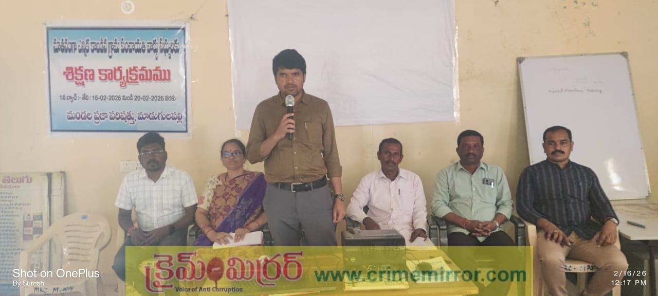 క్రైమ్ మిర్రర్, మాడులపల్లి ప్రతినిధి: నల్గొండ జిల్లా పంచాయితీ అధికారి ఆదేశాల మేరకు మాడులపల్లి మండలము ప్రజాపరిషిత్ అధికారి(MPDO) జి.వంశీధర్ అధ్యక్షతన నూతనముగా ఎన్నిక కాబడిన గ్రామా పంచాయితీ వార్డ్ మెంబర్ లకు జనరల్ ఓరియంటేషన్ శిక్షణ కార్యక్రమాన్ని నిర్వహించారు.