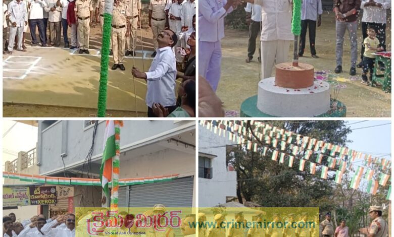 క్రైమ్ మిర్రర్, వలిగొండ:- యాదాద్రి భువనగిరి జిల్లా,వలిగొండ మండల పరిధిలోని వివిధ గ్రామాలతో పాటు వలిగొండ పట్టణ కేంద్రంలో 77వ గణతంత్ర దినోత్సవ వేడుకలను ఘనంగా నిర్వహించారు. మండల కేంద్రంలో వివిధ రాజకీయ పార్టీలు,యువజన సంఘాలు,కుల సంఘాలతో పాటు ప్రభుత్వ కార్యాలయాలలో గణతంత్ర దినోత్సవ వేడుకలను నిర్వహించారు. గ్రామపంచాయతీలో సర్పంచ్ కుంభం వెంకట్ పాపిరెడ్డి, తహసిల్దార్ కార్యాలయంలో తహసిల్దార్ జి దశరథ, పోలీస్ స్టేషన్లో సబ్ ఇన్స్పెక్టర్ యుగేందర్ గౌడ్,మండల పరిషత్ కార్యాలయంలో జలేందర్ రెడ్డి, వ్యవసాయ కార్యాలయం వద్ద అంజని దేవి,వర్కింగ్ జర్నలిస్ట్ కార్యాలయం మరియు ఉద్యమకాల ఫోరం ఆధ్వర్యంలో మారగోని శ్రీనివాస్ గౌడ్,మాల మహానాడు ఆధ్వర్యంలో కూచుమల్ల నాగేష్, కల్లుగీత కార్మిక సంఘం కార్యాలయం లో కొండూరు అంజయ్య గౌడ్ జెండా ఎగరవేశారు.ఈ కార్యక్రమంలో జిల్లా కాంగ్రెస్ ఉపాధ్యక్షుడు వాకిటి అనంతరెడ్డి, బిజెపి రాష్ట్ర నాయకులు బంధారపు లింగస్వామి,మండల అధ్యక్షుడు పాశం సత్తిరెడ్డి,జిల్లా కాంగ్రెస్ నాయకులు బత్తిని లింగయ్య,సహదేవ్ గౌడ్,లు ఉద్యమకారుల ఫోరం రాష్ట్ర ఉపాధ్యక్షుడు జోగు అంజన్న,ఉమ్మడి నల్లగొండ జిల్లా అధ్యక్షుడు శీలం స్వామి,సిపిఎం మండల కార్యదర్శి సిర్పంగి స్వామి,కాసుల వెంకన్న,సాయిని యాదగిరి,మాల మహానాడు జిల్లా అధ్యక్షుడు పేరుమండ్ల యాదగిరి,రాపోలు పవన్ కుమార్,యూత్ కాంగ్రెస్ జిల్లా ఉపాధ్యక్షుడు బత్తిని వరుణ్,కొండూరు సాయి,ఎక్కలదేవి శ్రీనివాస్,తదితరులు పాల్గొన్నారు.