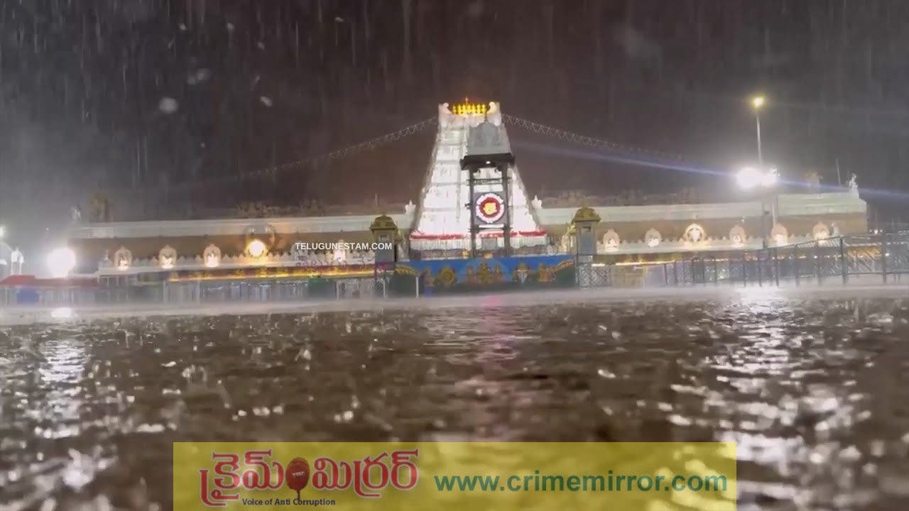 నైరుతి బంగాళాఖాతంలో ఏర్పడిన అల్పపీడనం ప్రభావంతో తిరుమలలో భారీ వర్షం కురుస్తోంది. బుధవారం ఉదయం నుంచి తిరుమలలో ఆగకుండా వర్షం పడుతుండటంతో రోడ్లన్ని వర్షపు నీటితో నిండి పోయాయి. భారీగా కురిసిన వర్షానికి నాలుగు మాఢ వీదులు జలమయం కాగా… ఆలయంలో కొద్ది పాటి వరద నీరు చేరుకుంది. స్వామి వారి దర్శనానికి వెళ్ళిన భక్తులు, స్వామి వారి దర్శనం అనంతరం బయటకు వచ్చిన భక్తులు వర్షానికి తడిచి ముద్ద అయ్యారు. స్వామి వారి దర్శనం తరువాత వెలుపలకు వచ్చిన భక్తులు.. తమ వసతి గృహాలకు వెళ్లేందుకు తీవ్ర ఇబ్బందులకు గురవుతున్నారు. క్యూ లైన్ లో ఉన్న భక్తులు వర్షానికి తడవకుండా కంపార్ట్మెంట్లోకి షెడ్యూల్లోకి ఎప్పటికప్పుడు అనుమతిస్తున్నారు. నిర్విరామంగా భక్తులకు మంచినీళ్లు, పాలు, అల్పాహారం పంపిణీ చేస్తున్నారు.