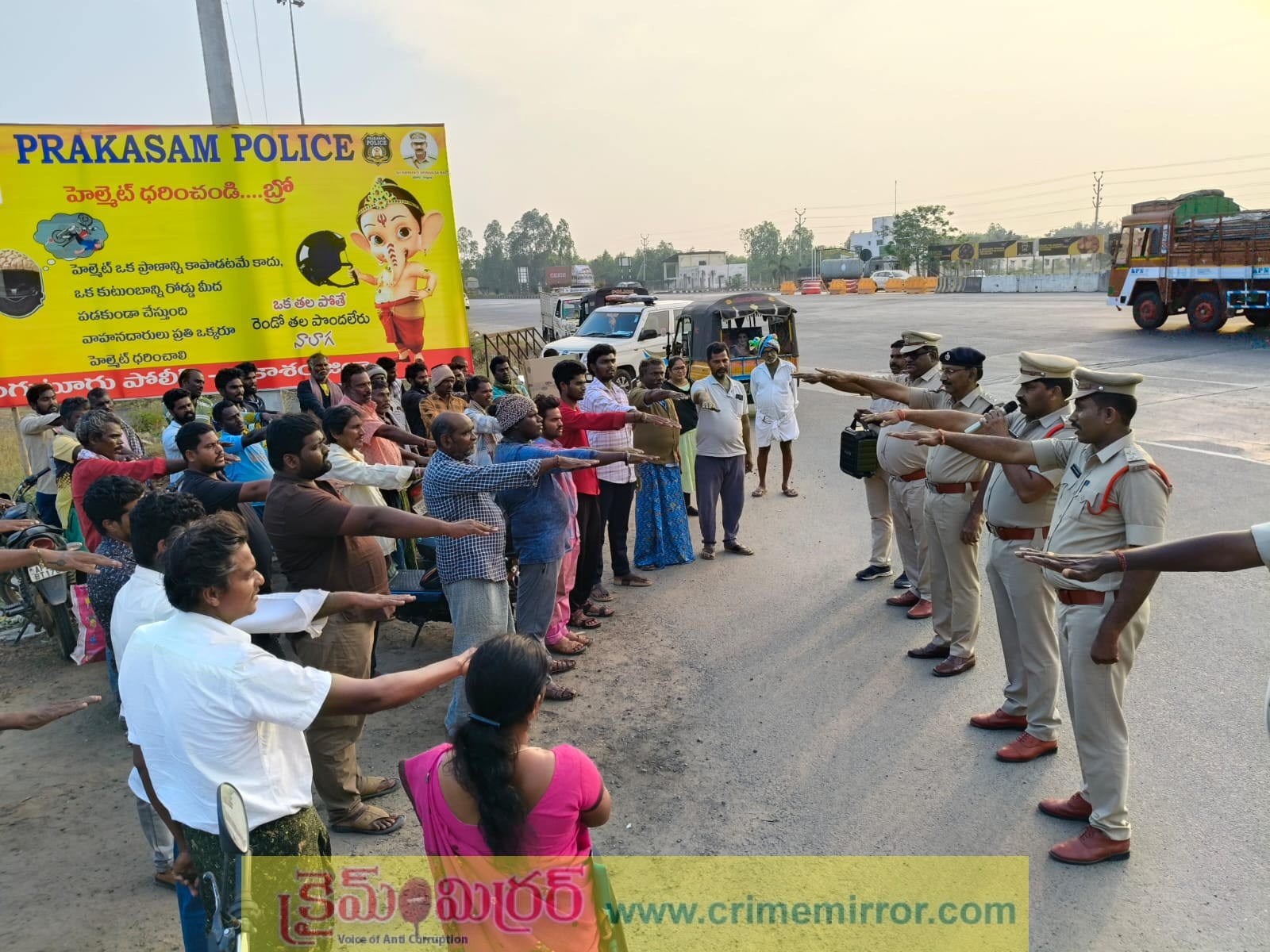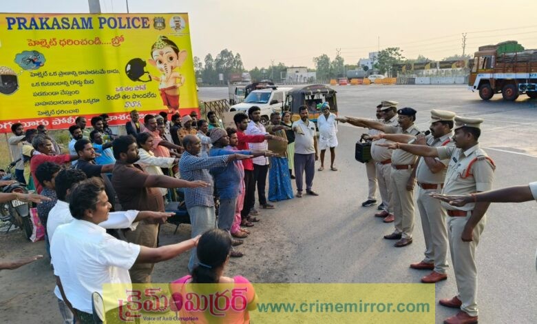 హెల్మెట్ ప్రాణ రక్షక కవచంలా పనిచేస్తుందని పోలీసులు వివరించారు. అనంతరం వాహనదారులందరిచే “నేటి నుండి ప్రయాణంలో తప్పనిసరిగా హెల్మెట్ ధరిస్తాం” అని ప్రతిజ్ఞ చేయించారు.