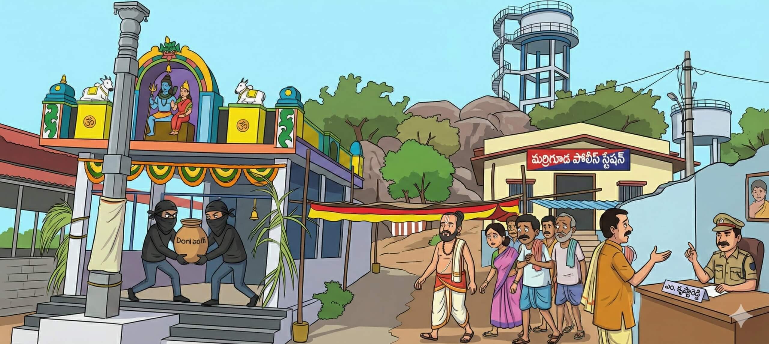 పవిత్రమైన ఆలయంలో ఇలాంటి అపచారం జరగడంపై, స్థానిక భక్తులు తీవ్ర ఆవేదన వ్యక్తం చేస్తున్నారు. గతంలోనూ ఈ ప్రాంతంలోని ఆలయాల్లో నిఘా తక్కువగా ఉన్న సమయంలో, చోరీలు జరిగిన దాఖలాలు ఉన్నాయని, భద్రత విషయంలో అధికారులు కఠిన చర్యలు తీసుకోవాలని ఆలయ కమిటీ సభ్యులు కోరుతున్నారు. దేవుడి సన్నిధిలో ఇలాంటి దుశ్చర్యలకు పాల్పడటం అత్యంత విచారకరమని, పోలీసులు వెంటనే స్పందించి నిందితులను కఠినంగా శిక్షించాలని స్థానికులు కోరుతున్నారు. ప్రస్తుతం పోలీసులు కేసు నమోదు చేసి దర్యాప్తు ముమ్మరం చేశారు. నిందితుల కోసం గాలింపు చర్యలు కొనసాగుతున్నాయి.