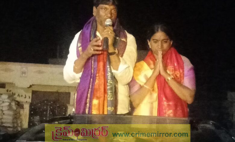 క్రైమ్ మిర్రర్, కల్వకుర్తి:- ఇచ్చిన మాట ప్రకారం పడకల్ గ్రామాన్ని అన్ని రంగాల్లో అభివృద్ధి చేసి జిల్లాలోనే ఆదర్శ గ్రామంగా తీర్చిదిద్దుతానని రంగారెడ్డి జిల్లా, పడకల్ గ్రామ సర్పంచ్ డోకూరి సునీతా ప్రభాకర్ రెడ్డి తెలిపారు. మలిదశ స్థానిక ఎన్నికల్లో కాంగ్రెస్ పార్టీ బలపరిచిన సర్పంచ్ అభ్యర్థిగా డొకోరి సునీత ప్రభాకర్ రెడ్డి ఘన విజయం సాధించారు. ఈ సందర్భంగా ఆదివారం పడకల్ గ్రామంలో భారీ విజయవత్సవ ర్యాలీ నిర్వహించారు. బాణాసంచా కాలుస్తూ డీజే పాటలతో గ్రామస్తులు సంబరాలు జరుపుకున్నారు. అనంతరం వారు మాట్లాడుతూ.. తనపై నమ్మకం ఉంచి ఓటు వేసిన ప్రతి ఒక్కరికి ధన్యవాదాలు తెలిపారు. ఇచ్చిన మాట ప్రకారం పడకల్ గ్రామాన్ని సొంత నిధులతోనూ.. ప్రభుత్వం నిధులతో అన్ని మౌలిక వసతులు కల్పించి అభివృద్ధిలో జిల్లాలోనే అగ్రగామిగా నిలుపుతానని హామీ ఇచ్చారు.