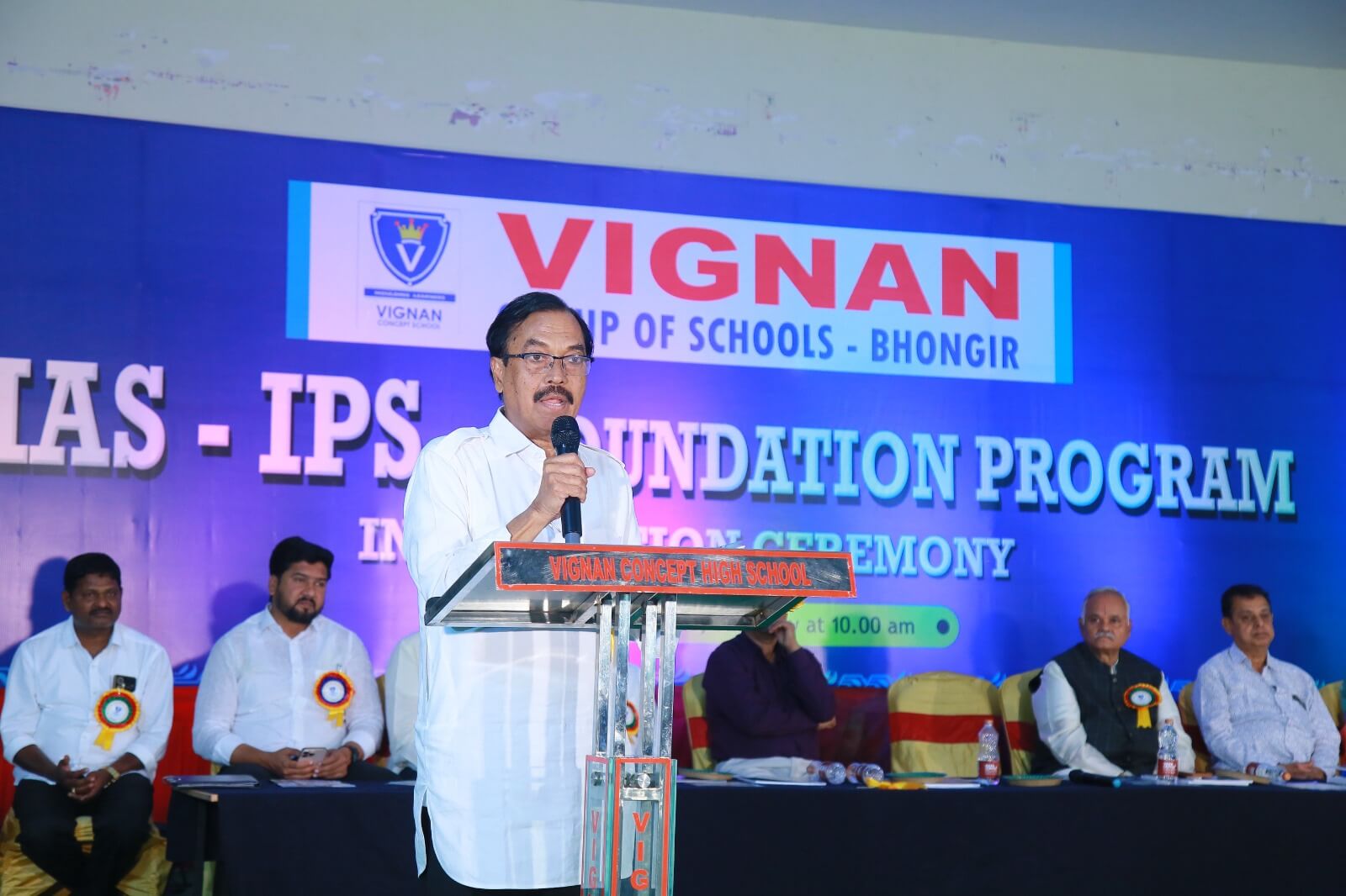 క్రైమ్ మిర్రర్,ఆత్మకూరు:- యాదాద్రి భువనగిరి జిల్లా, భువనగిరి పట్టణంలోని విజ్ఞాన్ గ్రూప్ ఆఫ్ స్కూల్స్ చైర్మన్ పగిడాల జలందర్ రెడ్డి ఆధ్వర్యంలో ఐఏఎస్, ఐపీఎస్ ఫౌండేషన్ ప్రోగ్రాంను శనివారం ఘనంగా ప్రారంభించారు. ఈ కార్యక్రమాన్ని జిల్లా అదనపు కలెక్టర్ భాస్కర్ రావు, సినీ గేయ రచయిత సుద్దాల అశోక్ తేజ సంయుక్తంగా ప్రారంభించారు.ఈ సందర్భంగా పలువురు మాట్లాడుతూ తెలంగాణ రాష్ట్రంలో మొట్టమొదటిసారిగా ఇలాంటి ఫౌండేషన్ ప్రోగ్రామ్ను ప్రారంభించడం అభినందనీయమని తెలిపారు. ఈ అవకాశాన్ని విద్యార్థులు సద్వినియోగం చేసుకొని ఉన్నత శిఖరాలకు చేరాలని ఆకాంక్షించారు. కార్యక్రమాన్ని నిర్వహించిన విజ్ఞాన్ గ్రూప్ ఆఫ్ స్కూల్స్ చైర్మన్ డా. పగిడాల జలంధర్ రెడ్డిని అభినందించారు.