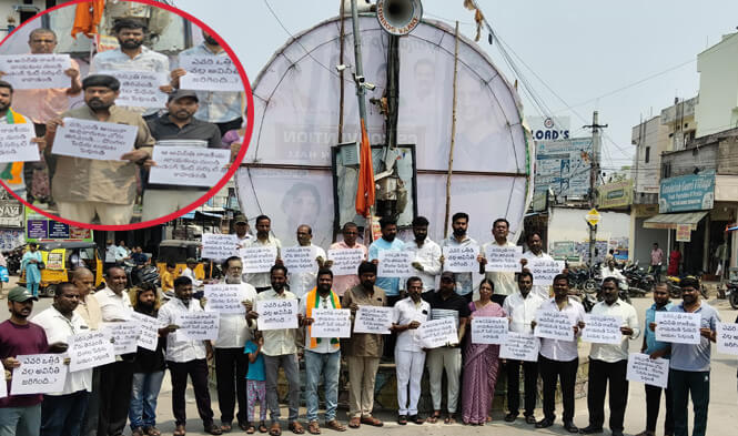 ప్లకార్డులు పట్టుకుని “సరస్వతి గారు వెంటనే నోరు విప్పాలి”, “సస్పెండ్ అయిన అధికారులు నిజాలు బయటపెట్టాలి”,అసలు సూత్రధారుల పేర్లు వెల్లడించాలి” అంటూ బీజేపీ నాయకులు, కార్యకర్తలు ఆగ్రహం వ్యక్తం చేశారు.