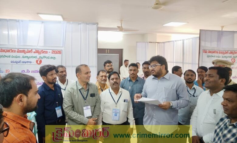 మిర్యాలగూడ, క్రైమ్ మిర్రర్:- రాష్ట్రంలో రెండవ సాధారణ మున్సిపల్ ఎన్నికల నేపథ్యంలో మిర్యాలగూడ మునిసిపల్ వార్డుల నామినేషన్ కేంద్రాలను బుధవారం మిర్యాలగూడ సబ్ కలెక్టర్ ఎం. నారాయణ్ అమిత్ పరిశీలించారు. ఈ సందర్భంగా పట్టణంలోని అంబేద్కర్ భవన్‌లో ఏర్పాటు చేసిన నామినేషన్ కేంద్రాన్ని సందర్శించి, అక్కడ చేపట్టిన ఏర్పాట్లు, హెల్ప్‌డెస్క్ పనితీరును పరిశీలించారు. నామినేషన్ ప్రక్రియ ఎలాంటి అవాంతరాలు లేకుండా సజావుగా సాగేందుకు అవసరమైన సూచనలు సంబంధిత రిటర్నింగ్ అధికారులకు అందించారు.