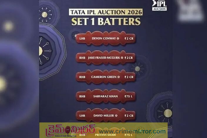 క్రైమ్ మిర్రర్, స్పోర్ట్స్ న్యూస్:- ఐపీఎల్ 2026 సంబంధించి మినీ వేలం ఈ నెల 16వ తేదీన అబుదాబిలో జరుగునన్న విషయం ప్రతి ఒక్కరికి తెలిసిందే. అయితే ఈ మినీ వేలంలో భాగంగా తాజాగా ఐపీఎల్ నిర్వహకులు తొలి సెట్ లో ఉండేటువంటి ఆటగాళ్ల జాబితాను విడుదల చేశారు. ఈ తొలి సెట్ జాబితాలో మొత్తం 6 గురు ప్లేయర్లను ఉంచారు. ఇందు లో భారీ ధర పలికేటువంటి ఆటగాళ్లు ఉన్నారు. మరీ ముఖ్యంగా డివాన్ కాన్వే, డేవిడ్ మిల్లర్, సర్ఫరాజ్ ఖాన్, కెమెరాన్ గ్రీన్, పృద్వి షా, జాక్ ప్రెజర్ వంటి కీలక ఆటగాళ్లు ఉన్నారు. వీరందరిలో మినీ వేలంలో అత్యధిక ధర కేమెరన్ గ్రీన్ పలికే అవకాశాలు ఉన్నాయి. ఎందుకంటే ఇతను బ్యాటింగ్ మరియు బౌలింగ్ చేయగల ప్లేయర్ కాబట్టి ఎక్కువ ధర పలికే అవకాశాలు ఉన్నాయి అని క్రీడా వర్గాలు పేర్కొన్నాయి. మరోవైపు ఈ మినీ వేలంలో దాదాపు చాలామంది పాల్గొంటున్నారు. ఇప్పటికే ఆయా ఫ్రాంచైజీలు ఏ క్రికెటర్ ను కొనుగోలు చేయాలి అని ఒక స్పష్టత అయితే వచ్చాయి. మరి ఈసారి అత్యధిక ధర పలికే ప్లేయర్ ఎవరో మీ అభిప్రాయాన్ని కామెంట్ రూపంలో తెలియజేయండి.