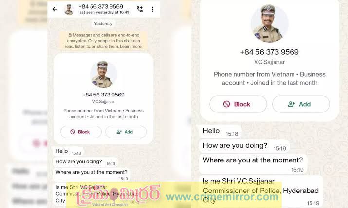 క్రైమ్ మిర్రర్, తెలంగాణ:- తెలంగాణ రాష్ట్రంలో కొంతమంది మోసగాళ్లు వినూతన పద్ధతిలో డబ్బులను కాజేయాలని చూస్తున్నారు. తాజాగా జరిగిన ఒక విషయం సోషల్ మీడియాలో తెగ వైరల్ అవుతుంది. ఏకంగా ఐపీఎస్ ఆఫీసర్ అయినటువంటి సజ్జనార్ డీపీ పెట్టుకొని మరీ మోసాలు చేస్తున్నటువంటి ఘటన సోషల్ మీడియాలో సంచలనం సృష్టిస్తుంది. నేరస్తుల గుండెల్లో వణుకు పుట్టించే ఐపీఎస్ ఆఫీసర్ సజ్జనార్ లాంటి వారి ఫోటో పెట్టుకొని మరి మోసాలు చేస్తున్నారంటే వారికి ఎంత ధైర్యం ఉంటే ఇలా చేస్తారో అర్థం చేసుకోవచ్చు. తాజాగా దీనిపై స్పందించిన పోలీసులు ఇలాంటి ఫేక్ డీపీలు పెట్టుకొని మెసేజ్ లను నమ్మవద్దు అని వారికి స్పందించి మోసపోవద్దని సూచించారు.
