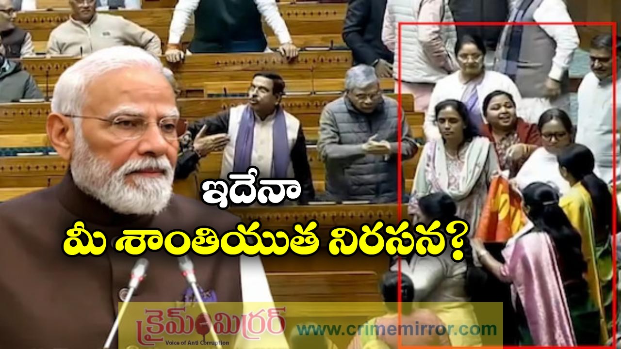 ఈ నేపథ్యంలో వారి శాంతియుత నిరసన ఇదేనంటూ రిజిజు ఆ వీడియోలను ‘ఎక్స్‌’లో పోస్టు చేశారు. బ్యానర్‌ పట్టుకుని ఆ మహిళా ఎంపీలు ప్రధాని కుర్చీ చుట్టూ చేరడం.. కేంద్ర మంత్రులు గిరిరాజ్‌ సింగ్‌, మరికొందరు ఎంపీలు వారిని వెనక్కి వెళ్లాలని కోరడం వాటిలో కనబడుతోంది. ‘తమ ఎంపీల దిగజారుడు ప్రవర్తనకు కాంగ్రెస్‌ ఎంతగానో గర్వపడుతోంది. మా ఎంపీలందరినీ గనుక మేం అడ్డుకుని ఉండకపోతే.. ప్రధాని కుర్చీని చుట్టుముట్టిన విపక్ష ఎంపీలను ఎదుర్కొనేందుకు మా మహిళా ఎంపీలను అనుమతించి ఉంటే.. సభలో చాలా దారుణ దృశ్యానికి దారితీసేది. పార్లమెంటు హుందాతనాన్ని కాపాడాలని.. దుందుడుకుగా వ్యవహరిస్తున్న విపక్ష ఎంపీలతో భౌతిక ఘర్షణకు బీజేపీ ఎంపీలు దిగరాదని మా నాయకత్వం నుంచి స్పష్టమైన ఆదేశాలున్నాయి’ అని రిజిజు వెల్లడించారు.