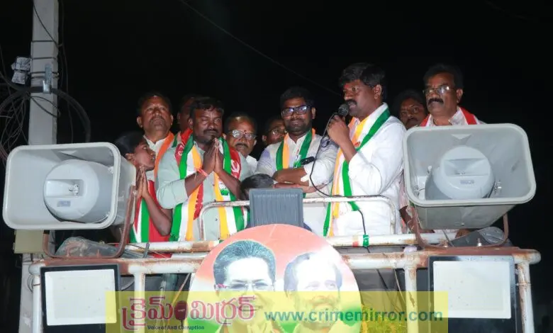 చిట్యాల,క్రైమ్ మిర్రర్:- చిట్యాల మున్సిపాలిటీ ఎన్నికల నేపథ్యంలో 09వ వార్డు కాంగ్రెస్ పార్టీ కౌన్సిలర్ అభ్యర్థి ఎర్పుల పరమేష్ , 10వ వార్డు కాంగ్రెస్ పార్టీ కౌన్సిలర్ అభ్యర్థి సిలువేరు శేఖర్ చెయ్యి గుర్తుకు ఓటు వేసి అత్యధిక మెజార్టీతో గెలిపించాలని నకిరేకల్ ఎమ్మెల్యే వేముల వీరేశం ప్రజలను కోరారు.ఈ సందర్భంగా వారు మాట్లాడుతూ, వార్డుల్లో ఉన్న ప్రతి సమస్యను గుర్తించి, అన్ని సమస్యలను పరిష్కరిస్తామని హామీ ఇచ్చారు. కాంగ్రెస్ పార్టీ అధికారంలో ఉన్నందున అభివృద్ధి పనులకు ఎలాంటి అడ్డంకులు ఉండవని, ప్రజల సహకారంతో చిట్యాల మున్సిపాలిటీని అభివృద్ధి పథంలో ముందుకు తీసుకెళ్తామని తెలిపారు. ఈ కార్యక్రమంలో సర్పంచ్ ఫోరం అధ్యక్షులు కాటం వెంకటేశం, గుడిపాటి లక్ష్మీ నరసింహ, మారగోని ఆంజనేయులు, పాటి మాధవరెడ్డి, బెల్లీ సత్తయ్య, పాటి నర్సిరెడ్డి, ఎస్కే ఇబ్రహీం, జగిని బిక్షం రెడ్డి, కొసనం అశోక్ ,ఓర్సు సైదులు, మధుసూదన్, దివాకర్ రెడ్డి , మహేందర్ రెడ్డి,సల్ల రాజు, ఖమ్మం పాటి సతీష్ ,కళ్లెం నరసింహ,జడల సుమన్ తదితరులు పాల్గొన్నారు.