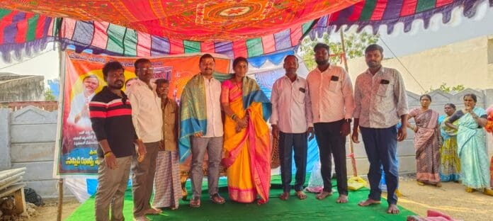 క్రైమ్ మిర్రర్,ఆత్మకూరు:- యాదాద్రి భువనగిరి జిల్లా,ఆత్మకూరు మండలం సింగారం గ్రామంలోని ఎస్సీ కాలనీ వాసులకు బిఆర్ఎస్ నాయకులు సప్పిడి ఝాన్సీ పురుషోత్తం రెడ్డి ఆదివారం 2 లక్షల విలువ చేసే టెంట్ హౌస్ ను అందజేశారు.ఈ సందర్భంగా దాత ఝాన్సీ పురుషోత్తం రెడ్డిని ఎస్సీ కాలనీవాసులు సన్మానించి కృతజ్ఞతలు తెలిపారు. అనంతరం అన్నదాన కార్యక్రమం చేపట్టారు.ఈ కార్యక్రమంలో బిఆర్ఎస్ నాయకులు వల్లాల రాములు,శ్రీహరి,వెంకట్ రెడ్డి, చంద్రయ్య,శ్రీరాములు,సిద్ధులు, పాల సంఘం చైర్మన్ బిక్షపతి, ఎస్సీ కాలనీవాసులు తదితరులు పాల్గొన్నారు.