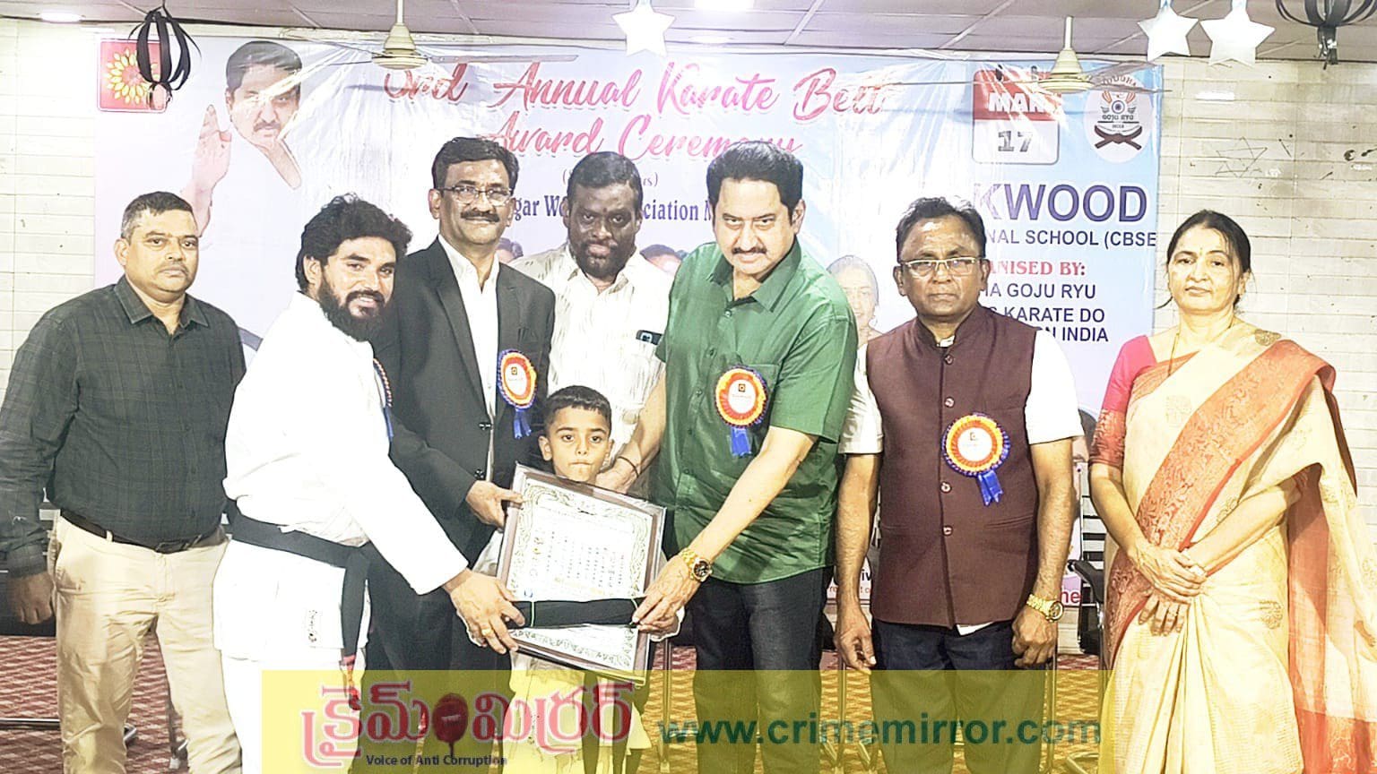 ఎల్బీనగర్, క్రైమ్ మిర్రర్:-విద్యార్థులు చదువులతో పాటు క్రీడా రంగాల్లో రాణించేలా తల్లిదండ్రులు, ఉపాధ్యాయులు కృషి చేయాలని సినీ నటుడు తల్వార్ సుమన్ సూచించారు. ఎల్బీనగర్ నియోజకవర్గం కొత్తపేట సత్యానగర్ లోని ఓక్వుడ్ ఇంటర్నేషనల్ స్కూల్ లో కరాటే పోటీల్లో ప్రతిభ కనబరిచిన విద్యార్థులకు యొద్ధ గోజుర్యు స్పోర్ట్స్ కరాటే డు ఆర్గనైజేషన్ ఇండియా ఆధ్వర్యంలో సోమవారం సాయంత్రం బెల్టుల ప్రదానోత్సవ కార్యక్రమం జరిగింది. ఈ సందర్భంగా తల్వార్ సుమన్ మాట్లాడుతూ కరాటే శిక్షణతో మానసిక ప్రశాంతతో పాటు శారీరక దారుఢ్యం లభిస్తుందని తెలిపారు.
