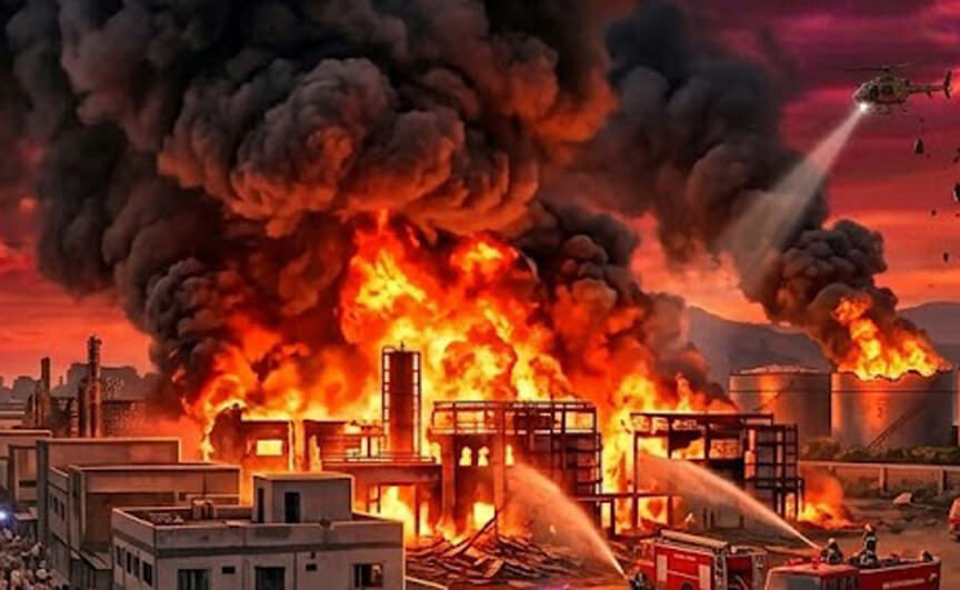 మంటల తీవ్రతతో కెమికల్ సాల్వెంట్స్ నిండిన డ్రమ్స్ రోడ్లపై ఎగిసిపడుతూ పేలిపోవడంతో పరిస్థితి మరింత భయానకంగా మారింది. భారీగా ఎగిసిపడుతున్న మంటలు, దట్టమైన పొగ కారణంగా స్థానికులు భయంతో ఇళ్ల నుంచి బయటకు పరుగులు తీశారు. సమాచారం అందుకున్న అగ్నిమాపక సిబ్బంది సంఘటనా స్థలానికి చేరుకుని మంటలను అదుపులోకి తీసుకురావడానికి ప్రయత్నిస్తున్నారు.