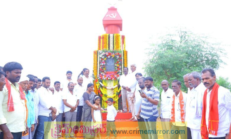 యాదాద్రి భువనగిరి జిల్లా, క్రైమ్ మిర్రర్ :- సంస్థాన్ నారాయణపురం మండలం అల్లందేవి చెరువు గ్రామంలో సీపీఐ మండల నాయకుడు మాజీ ఎంపీపీ ఎల్లంకి శ్రీనివాస్ 10 వ వర్ధంతి ని ఆయన స్థూపం వద్ద పూలమాలలు వేసి జోహార్లు అర్పించి ఘనంగా నిర్వహించారు. ఈ వర్ధంతి సభలో మునుగోడు మాజీ ఎమ్మెల్యే ఉజ్జిని యాదగిరిరావు మాట్లాడుతూ శ్రీనివాస్ నిస్వార్ధ గల కమ్యూనిస్టు నాయకుడు అని మాట్లాడారు. సాధారణ కుటుంబంలో పుట్టినా, ప్రజల సమస్యల పరిష్కారం కోసం ఈ ప్రాంత అభివృద్ధి కి ఎంతో కృషి చేశారని గుర్తు చేశారు. ఆయన జీవితం యువత కు ఆదర్శమని సమాజానికి వెలుగు పంచేదిశగా శ్రీనివాస్ ఆశయాలు కొనసాగించాలని తెలిపారు. ఈ గ్రామంలో పేదలకు ఇళ్ల స్థలాలు ఇవ్వాలని గుండు కిష్టయ్య, కురుమిద్ద లింగయ్య లతో కలిసి భూ పోరాటాలు నిర్వహించి అప్పటి ఎమ్మెల్యే ఉజ్జిని నారాయణరావు చొరవతో అల్లందేవి చెరువు గ్రామంలో ఇంటి నిర్మాణాలు చేయించారని గుర్తు చేశారు. ఆయన సేవలను స్మరించుకున్నారు. ఈ కార్యక్రమంలో సిపిఐ జిల్లా కార్యవర్గ సభ్యుడు బచ్చనగోని గాలయ్య, ప్రజానాట్యమండలి రాష్ట్ర అధ్యక్షుడు కే శ్రీనివాస్, సిపిఐ మండల కార్యదర్శి దుబ్బాక భాస్కర్, సిపిఐ జిల్లా సమితి సభ్యుడు కలకొండ సంజీవ, సీపీఐ సీనియర్ నాయకులు మాజీ సర్పంచ్ దేశిడి నరేందర్ రెడ్డి,సురవి నరసింహ, గుండు నరసింహ, పొట్ట శంకరయ్య, పల్లె మల్లారెడ్డి, ముత్యాల అంజయ్య, ఎర్రోళ్ల లింగస్వామి, బద్దుల పెంటయ్య, ఈద మల్లయ్య, గడ్డం యాదగిరి, శ్రీనివాస్ కుటుంబ సభ్యులు పాల్గొన్నారు.