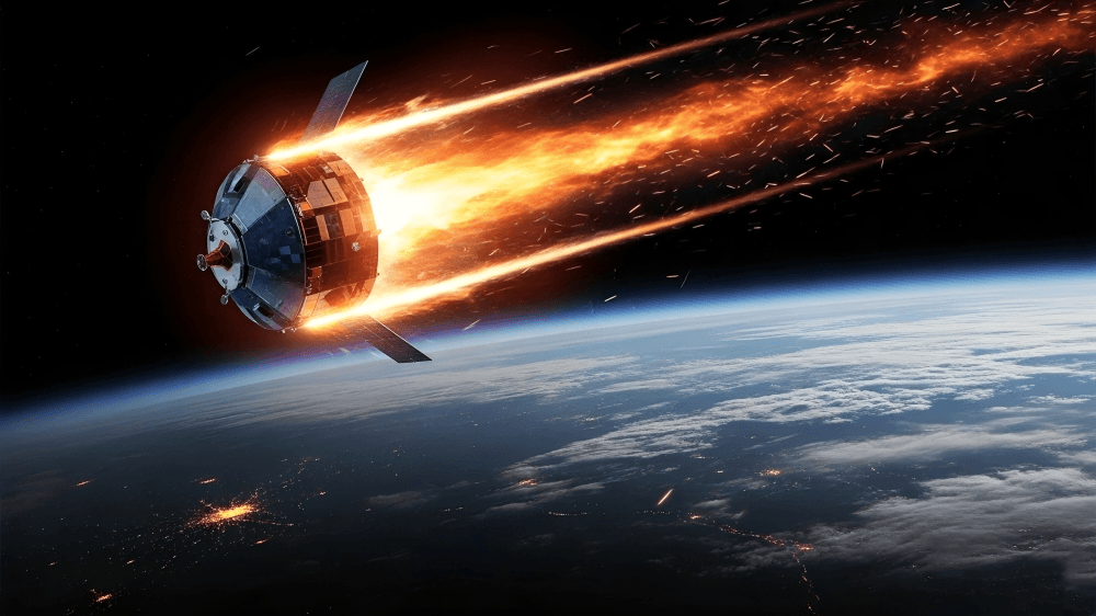 ఉపగ్రహం భూమి వాతావరణంలోకి ప్రవేశించే సమయంలో అద్భుతమైన భౌతిక ప్రక్రియలు జరుగుతాయి. సుమారు 120 కిలోమీటర్ల ఎత్తు వద్ద వాతావరణం మరింత సాంద్రంగా మారుతుంది. ఆ సమయంలో ఉపగ్రహం వేగం గంటకు సుమారు 28000 కిలోమీటర్ల వరకు ఉండవచ్చు. ఈ వేగం ధ్వని వేగం కంటే అనేక రెట్లు ఎక్కువ. అంత వేగంగా ప్రయాణించే వస్తువు వాతావరణంలోకి ప్రవేశించినప్పుడు గాలి ఘర్షణ తీవ్రంగా పెరుగుతుంది. దాని వల్ల ఉపగ్రహం చుట్టూ తీవ్రమైన ఉష్ణోగ్రత ఏర్పడి కొన్ని సందర్భాల్లో 2000 డిగ్రీల సెల్సియస్ వరకు చేరుతుంది. ఈ అధిక ఉష్ణోగ్రత కారణంగా ఉపగ్రహం బయట పొరలు క్రమంగా కాలిపోతూ కరుగుతాయి.