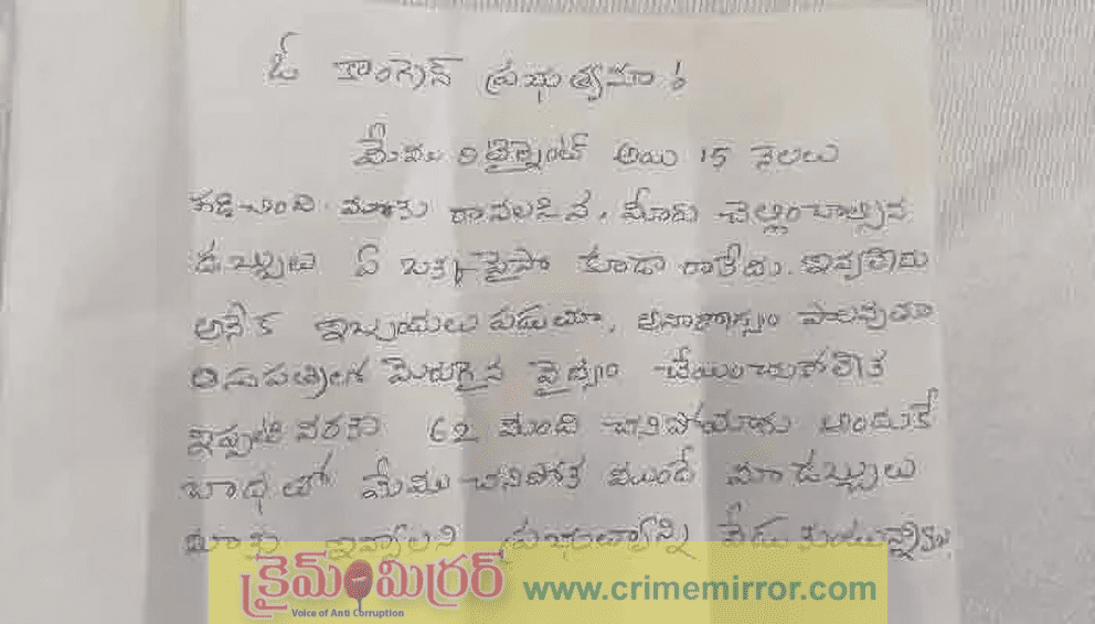 ఆ లేఖలో రిటైర్మెంట్ పొందిన ఉద్యోగుల బాధ ఆవిష్కృతమైంది. “ఓ కాంగ్రెస్ ప్రభుత్వమా… మేము రిటైర్ అయ్యి 15 నెలలు గడిచింది. మాకు రావాల్సిన, మీరు చెల్లించాల్సిన డబ్బుల్లో ఒక్క పైసా కూడా అందలేదు. అనేక ఇబ్బందులు ఎదుర్కొంటూ, అనారోగ్యంతో ఆస్పత్రుల్లో సరైన వైద్యం చేయించుకోలేక ఇప్పటివరకు 62 మంది మరణించారు. మేము చనిపోకముందే మా బకాయిలు చెల్లించాలి” అని ఆ పత్రంలో పేర్కొనబడింది. ఈ వాక్యాలు చదివిన వారిని కదిలించాయి. ఎన్నికల బాక్స్లో ఈ విధంగా వేదన వ్యక్తం కావడం పరిస్థితి తీవ్రతను తెలియజేస్తోంది.