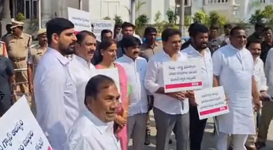 హైదరాబాద్, క్రైమ్ మిర్ర‌ర్ః  ప‌శ్చిమాసియాలో యుద్ద ప్ర‌భావంతో ఎల్‌పీజీ గ్యాస్ కొర‌త‌తో రాష్ర్టంలో ప్ర‌జ‌లు తీవ్ర ఇబ్బందులు ఎదుర్కొంటున్నార‌ని మాజీ మంత్రి, బీఆర్ఎస్ వర్కింగ్ ప్రెసిడెంట్ కేటీఆర్ ఆవేద‌న వ్య‌క్తం చేశారు. మంగ‌ళ‌వారం గ్యాస్ స‌లిండ‌ర్ల కొర‌త‌ను నిర‌సిస్తూ గ‌న్ పార్కు వ‌ద్ద బీఆర్ ఎస్ శ్రేణులు నిర‌స‌న ప్ర‌ద‌ర్శ‌న నిర్వ‌హించారు. కేంద్ర రాష్ట్ర ప్రభుత్వాల తీరుకు వ్యతిరేకంగా ఆ పార్టీ ఎమ్మెల్యేలు, ఎమ్మెల్సీలు నినాదాలు చేశారు .