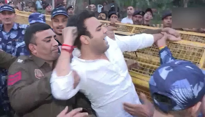 దేశ రాజధాని న్యూఢిల్లీ నగరంలో నిర్వహిస్తున్న ‘ఇండియా AI ఇంపాక్ట్ సమ్మిట్ 2026’ కార్యక్రమంలో శుక్రవారం ఉద్రిక్త వాతావరణం నెలకొంది. అంతర్జాతీయ స్థాయిలో నిర్వహిస్తున్న ఈ సదస్సులో యువ కాంగ్రెస్ కార్యకర్తలు అనూహ్యంగా నిరసన చేపట్టడంతో కొంతసేపు కలకలం రేగింది. అమెరికాతో భారత్ కుదుర్చుకున్న వాణిజ్య ఒప్పందాన్ని వ్యతిరేకిస్తూ యువ నాయకులు వేదిక సమీపంలో ఆందోళనకు దిగారు. ఒక్కసారిగా నినాదాలు చేయడంతో భద్రతా సిబ్బంది అప్రమత్తమయ్యారు.