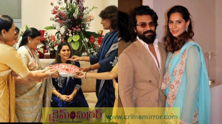 క్రైమ్ మిర్రర్,తెలంగాణ:- గ్లోబల్ స్టార్ రామ్ చరణ్ – ఉపాసన దంపతులు మరోసారి తల్లిదండ్రులు కాబోతున్నారు. వీరిద్దరూ త్వరలోనే మరో బిడ్డకు జన్మనివ్వబోతున్నట్లుగా కొద్ది రోజుల నుంచి సోషల్ మీడియాలో వార్తలు వస్తున్న విషయం ప్రతి ఒక్కరికి తెలిసిందే. ఈ నేపథ్యంలోనే తాజాగా ఉపాసన షేర్ చేసిన వీడియో సోషల్ మీడియాలో తెగ వైరల్ అవుతుంది. దీపావళి వేడుకగా మెగా ఫ్యామిలీలో డబుల్ ఆనందం తెచ్చి పెట్టిందని ఒక వీడియోను షేర్ చేశారు ఉపాసన. వీడియో వేరే ఏదో కాదు… ఉపాసన సీమంతం. ఈ సీమంతం వేడుకలలో మెగా కుటుంబ సభ్యులందరూ కూడా ఉపాసనను ఆశీర్వదిస్తూ కనిపించడంతో త్వరలోనే మెగా ఫ్యామిలీలోకి మరో వారసుడు రాబోతున్నట్లుగా మెగా ఫ్యాన్స్ సోషల్ మీడియా వేదికగా ముందుగానే శుభాకాంక్షలు చెబుతున్నారు. మెగాస్టార్ చిరంజీవి ఇంట్లో దీపావళి సెలబ్రేషన్స్ తో పాటుగా ఉపాసన సీమంతపు వేడుకలు కూడా ఘనంగా నిర్వహించారు. ఉపాసన, రాంచరణ్ ఇద్దరు 2023 జూన్ నెలలో క్లిం కారకు జన్మనిచ్చారు. మరోసారి వీరిద్దరూ మరో బిడ్డకు త్వరలోనే జన్మనిస్తున్న కారణంగా ” సింబా ” వస్తున్నాడు అంటూ మెగా ఫ్యాన్స్ సంతోషం వ్యక్తం చేస్తున్నారు. ప్రస్తుతం సోషల్ మీడియాలో ఉపాసన సీమంతం వేడుకల ఫోటోలు మరియు వీడియోలు వైరల్ అవుతూ ఉన్నాయి.