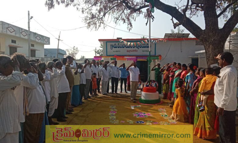 క్రైమ్ మిర్రర్,ఆత్మకూరు:- యాదాద్రి భువనగిరి జిల్లా ఆత్మకూరు మండలం పుల్లాయిగూడెం గ్రామ పంచాయతీ కార్యాలయం వద్ద 77వ గణతంత్ర దినోత్సవ వేడుకలు అట్టహాసంగా జరిగాయి. ఈ వేడుకల్లో భాగంగా గ్రామ సర్పంచి నరాముల రామలింగయ్య యాదవ్ జాతీయ జెండాను ఆవిష్కరించి, గౌరవ వందనం సమర్పించారు. అనంతరం గ్రామ ప్రజలను ఉద్దేశించి సర్పంచి నరాముల రామలింగయ్య ప్రసంగిస్తూ.. “మహనీయుల త్యాగాల వల్ల సిద్ధించిన ఈ స్వాతంత్ర్యాన్ని, డాక్టర్ బి.ఆర్. అంబేద్కర్ అందించిన రాజ్యాంగ ఫలాలను ప్రతి పౌరుడు అనుభవించేలా చూడటమే మన లక్ష్యం. పుల్లాయిగూడెం గ్రామాన్ని జిల్లాలోనే ఆదర్శ గ్రామంగా తీర్చిదిద్దేందుకు ప్రతి ఒక్కరూ సహకరించాలి” అని కోరారు.గ్రామ అభివృద్ధిలో రాజకీయాలకు అతీతంగా అందరూ భాగస్వాములు కావాలని,స్వచ్ఛ భారత్ స్ఫూర్తితో గ్రామాన్ని పరిశుభ్రంగా ఉంచుకోవాలని ఆయన పిలుపునిచ్చారు.ఈ కార్యక్రమంలో పంచాయతీ కార్యదర్శి,వార్డు సభ్యులు,గ్రామ పెద్దలు,స్వయం సహాయక సంఘాల మహిళలు మరియు గ్రామస్తులు పాల్గొన్నారు.