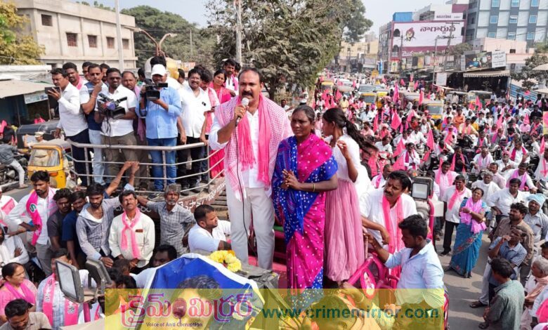 కోదాడ, క్రైమ్ మిర్రర్:- కోదాడ పట్టణం రాజకీయ వేడితో ఉక్కిరిబిక్కిరైంది. దళిత యువకుడు కర్ల రాజేష్ లాక్అప్ డెత్ ఘటనను నిరసిస్తూ బీఆర్ఎస్ పార్టీ ఆధ్వర్యంలో నిర్వహించిన భారీ నిరసన ప్రదర్శన పట్టణాన్ని కుదిపేసింది. వేలాదిమంది కార్యకర్తలు, నాయకులు బైకులు, కార్లు, ఇతర వాహనాల్లో తరలివచ్చి గులాబీ దండు సైన్యంలా ముందుకు సాగారు. ముఖ్యంగా యువత పెద్ద సంఖ్యలో పాల్గొనడం ఈ ఉద్యమానికి మరింత ఊపు తెచ్చింది. కాంగ్రెస్ ప్రభుత్వ నిర్లక్ష్య వైఖరి, పోలీసుల అత్యుత్సాహాన్ని ఖండిస్తూ పట్టణమంతా నినాదాలతో మార్మోగింది. ప్రజాస్వామ్యాన్ని ఖూనీ చేస్తున్న కాంగ్రెస్ పాలనకు ఇది గట్టి హెచ్చరికగా మారిందని బీఆర్ఎస్ నాయకులు పేర్కొన్నారు. ఈ కార్యక్రమంలో కోదాడ నియోజకవర్గ బీఆర్ఎస్ ఇంచార్జ్, మాజీ ఎమ్మెల్యే బొల్లం మల్లయ్య యాదవ్ ముఖ్య అతిథిగా పాల్గొని తీవ్ర స్థాయిలో ప్రసంగించారు.నిరసన ప్రదర్శనకు మాజీ ఎమ్మెల్యే చిరుమర్తి లింగయ్య, బీఆర్ఎస్ రాష్ట్ర అధికార ప్రతినిధి రాకేష్ రెడ్డి హాజరయ్యారు. ఈ సందర్భంగా బొల్లం మల్లయ్య యాదవ్ మాట్లాడుతూ.. రాజేష్ హత్య జరిగి 60 రోజులు గడుస్తున్నా స్థానిక ఎమ్మెల్యే ఉత్తం పద్మావతి రెడ్డి, మంత్రి ఉత్తమ్ కుమార్ రెడ్డి స్పందించకపోవడం ప్రజాస్వామ్యంలో దురదృష్టకరమని విమర్శించారు. బాధ్యులపై చర్యలు తీసుకోవడంలో ప్రభుత్వ వైఫల్యం స్పష్టంగా కనిపిస్తోందని ఆరోపించారు. కోదాడ, హుజూర్నగర్ నియోజకవర్గాలు కాంగ్రెస్ నేతలకు టూరిస్టు ప్రాంతాలుగా మారాయని, పట్టణంలో షాడో ఎమ్మెల్యేల మాఫియా రాజ్యం నడుస్తోందని మండిపడ్డారు. పోలీసుల ఆగడాలు అదుపు తప్పుతున్నాయని, బీఆర్ఎస్ నాయకులు, కార్యకర్తలను ఉద్దేశపూర్వకంగా లక్ష్యంగా చేసుకుని ఇబ్బందులకు గురిచేస్తున్నారని ఆరోపించారు. పట్టణ సీఐ శివశంకర్ వ్యవహారశైలి ‘కాకి చొక్కా తొడిగిన చందంగా’ మారిందని విమర్శించిన ఆయన, ఇసుక, మద్యం, మట్టి మాఫియాలతో పోలీసులకు ప్రత్యక్ష సంబంధాలు ఉన్నాయనే ఆరోపణలు గుప్పించారు.