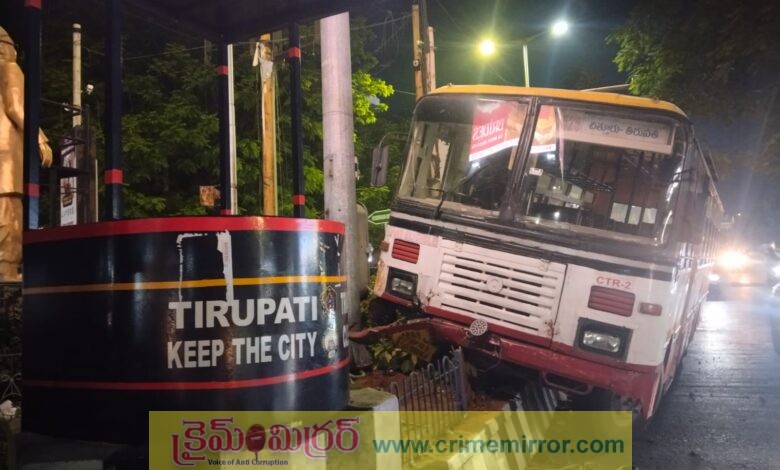 తిరుపతి, క్రైమ్ మిర్రర్ః తిరుపతి నగరంలోని రామకృష్ణా డీలక్స్ సమీపంలో ఆర్టీసీ బస్సు ఒక్కసారిగా డీవైడర్పై దూసుకెళ్లింది. కాగా చిత్తూరు-2 డిపోకు చెందిన ఆర్టీసీ బస్సు డ్రైవర్కు ఫిట్స్ రావడంతో నియంత్రణ కోల్పాయాడు. దీంతో డివైడర్ పైకిబస్సు ఎక్కించాడు. ఎవరికి ఎలాంటి గాయాలు కాకపోవంతో ప్రయాణీకులంతా ఊపిరి పీల్చుకున్నారు.
