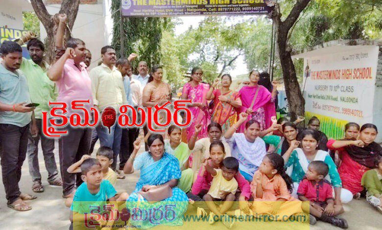 నల్లగొండ ఉమ్మడి జిల్లా బ్యూరో, క్రైమ్ మిర్రర్ : నల్లగొండ పట్టణంలో విద్యార్థుల తల్లిదండ్రులు తమ పిల్లల విద్యను కాపాడాలని డిమాండ్ చేస్తూ.. ద మాస్టర్ మైండ్ హై స్కూల్ వద్ద తల్లిదండ్రులు గురువారం పెద్ద సంఖ్యలో చేరి ధర్నా చేపట్టారు. కొద్ది రోజుల క్రితం ఈ పాఠశాలకు చెందిన బస్సు కింద పడి ఒక చిన్నారి మృతి చెందిన ఘటనతో విద్యాశాఖ అధికారులు ఆ స్కూల్ను సీజ్ చేశారు. ఈ నిర్ణయంతో విద్యార్థులు ఒక్కసారిగా చదువుల నుండి దూరమయ్యారు. తల్లిదండ్రులు తమ పిల్లలు విద్యా సంవత్సరం ముగింపు దశలో ఉన్నారని, ఈ సమయంలో ఇతర పాఠశాలలు కొత్త అడ్మిషన్లు తీసుకోవడంలేదని వాపోయారు. వారు మా పిల్లలకు మాస్టర్ మైండ్ స్కూల్ తప్ప ఇంకో మార్గం లేదని తీవ్ర ఆవేదన వ్యక్తం చేశారు. పిల్లల చదువును ఇలా మధ్యలో ఆపివేయడం న్యాయం కాదు. మా పిల్లల భవిష్యత్తును కాపాడండి… అంటూ ఆందోళనలో నినాదాలు చేశారు.