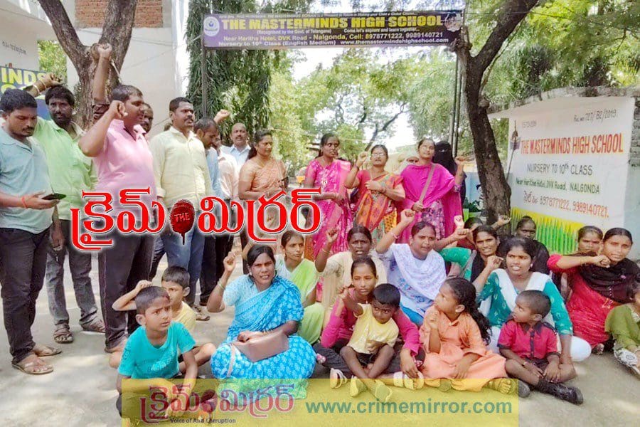 నల్లగొండ ఉమ్మడి జిల్లా బ్యూరో, క్రైమ్ మిర్రర్ : నల్లగొండ పట్టణంలో విద్యార్థుల తల్లిదండ్రులు తమ పిల్లల విద్యను కాపాడాలని డిమాండ్ చేస్తూ.. ద మాస్టర్ మైండ్ హై స్కూల్ వద్ద తల్లిదండ్రులు గురువారం పెద్ద సంఖ్యలో చేరి ధర్నా చేపట్టారు. కొద్ది రోజుల క్రితం ఈ పాఠశాలకు చెందిన బస్సు కింద పడి ఒక చిన్నారి మృతి చెందిన ఘటనతో విద్యాశాఖ అధికారులు ఆ స్కూల్ను సీజ్ చేశారు. ఈ నిర్ణయంతో విద్యార్థులు ఒక్కసారిగా చదువుల నుండి దూరమయ్యారు. తల్లిదండ్రులు తమ పిల్లలు విద్యా సంవత్సరం ముగింపు దశలో ఉన్నారని, ఈ సమయంలో ఇతర పాఠశాలలు కొత్త అడ్మిషన్లు తీసుకోవడంలేదని వాపోయారు. వారు మా పిల్లలకు మాస్టర్ మైండ్ స్కూల్ తప్ప ఇంకో మార్గం లేదని తీవ్ర ఆవేదన వ్యక్తం చేశారు. పిల్లల చదువును ఇలా మధ్యలో ఆపివేయడం న్యాయం కాదు. మా పిల్లల భవిష్యత్తును కాపాడండి… అంటూ ఆందోళనలో నినాదాలు చేశారు.
