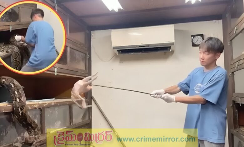 ఒక చిన్న గదిలో ఉన్న వ్యక్తి, చేతిలో కర్రతో కొండచిలువలకు ఆహారం పెట్టడానికి సిద్ధమవుతున్నాడు. గాజు క్యాబినెట్ తలుపు తెరవగానే లోపలి నుంచి భారీ కొండచిలువ ఒక్కసారిగా ఎగిరి అతని మీదకు దూకడానికి ప్రయత్నించింది. ఆకస్మికంగా వచ్చిన ఈ దాడితో అతను ఒక్క క్షణం దిగ్భ్రాంతికి గురయ్యాడు. అయితే భయపడకుండా వెంటనే శాంతంగా వ్యవహరించి, అందులో ఉన్న కోడిని పాముకి అందించాడు. కోడి అతడి చేతిలో ఉండగానే కొండచిలువ దానిపై పట్టు సాధించింది. ఆ క్షణంలోనే అతను పామును తిరిగి క్యాబినెట్ లోపలికి తోసి తలుపు మూసేశాడు. ఇది ఒక్క పాము మాత్రమే కాదు. పక్కనే ఉన్న మరిన్ని కొండచిలువలకు కూడా అతను ఇదే రీతిలో ఆహారం పెట్టాడు. ప్రతి సారి దాడి చేసే ప్రమాదం ఉండే పని ఇది. అతను చేసే ఈ పనిలో ఉన్న అనిశ్చితి, భయం, ప్రమాదం వీడియోలో స్పష్టంగా కనిపిస్తోంది. అక్కడి పరిస్థితిని చూస్తే ఒక్క తప్పు జరిగినా ప్రాణం పోయే అవకాశం ఉన్నట్టే అనిపిస్తోంది.