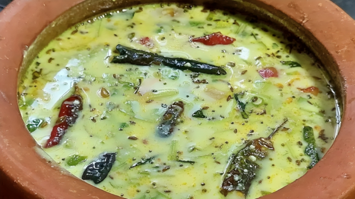 ఈ వంటకానికి అసలు రుచి తాలింపుతో వస్తుంది. ఒక పాన్ తీసుకుని అందులో నూనె వేసి వేడి చేయాలి. నూనె వేడయ్యాక ముందుగా మెంతులు, ఆవాలు, జీలకర్ర వేసి చిటపటలాడనివ్వాలి. తరువాత మినప్పప్పు, శనగపప్పు వేసి స్వల్పంగా వేయించాలి. ఇవి కొద్దిగా గోధుమ రంగు వచ్చే వరకు వేయిస్తే మంచి రుచి వస్తుంది. తరువాత కొద్దిగా నలిపిన వెల్లుల్లి రెబ్బలు వేసి పచ్చివాసన పోయే వరకు వేయించాలి. చివరగా ఎండుమిర్చి ముక్కలు, కరివేపాకు వేసి తాలింపు సిద్ధం చేయాలి.